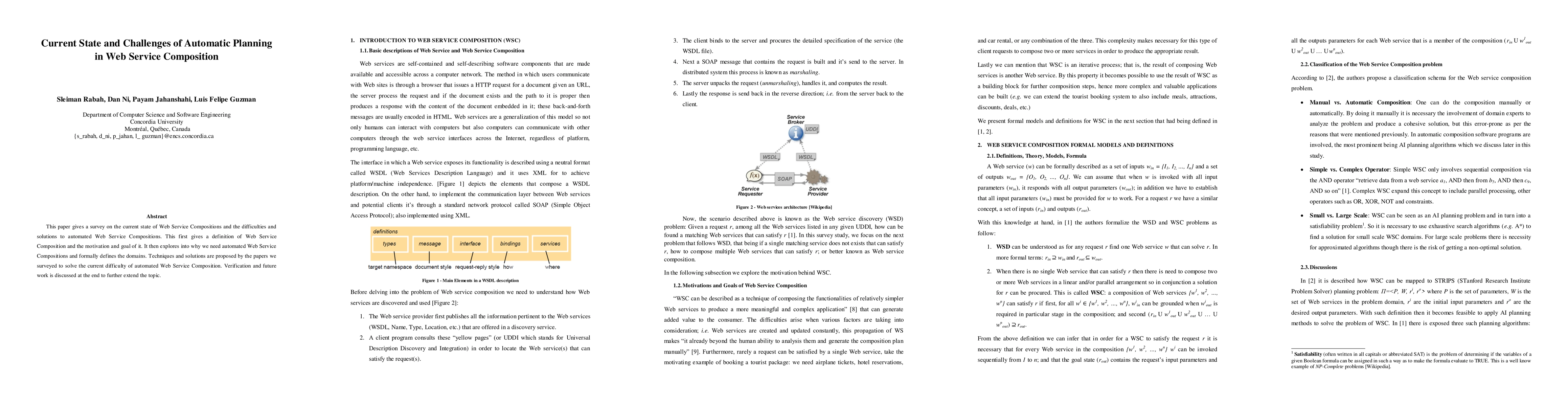 This paper surveys current state of Web Service Composition and its challenges, proposing solutions to automate compositions. It aims to improve efficiency and accuracy in integrating web services.