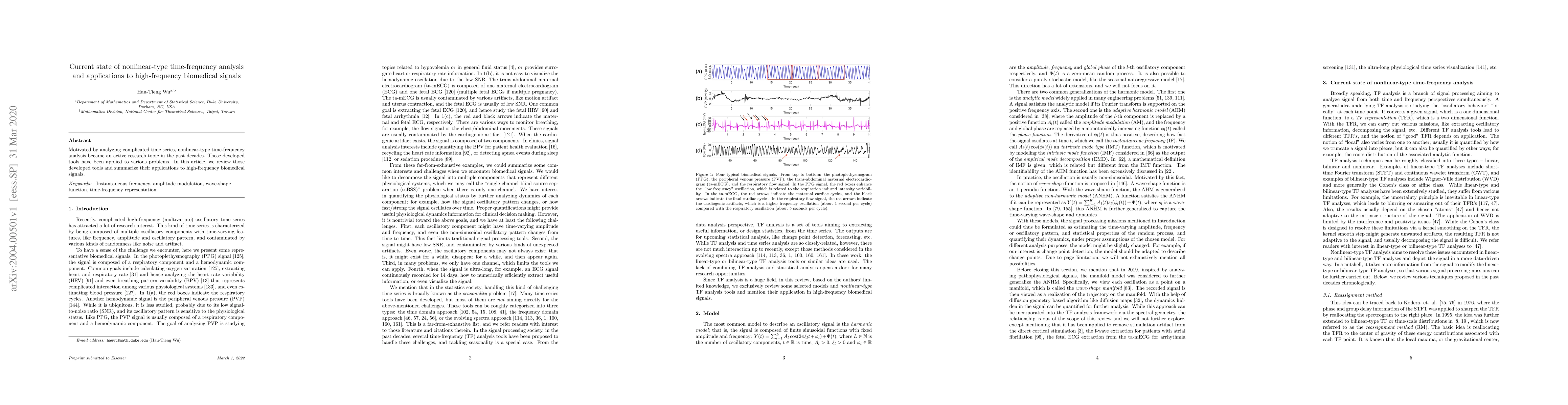 Motivated by analyzing complicated time series, nonlinear-type time-frequency analysis became an active research topic in the past decades. Those developed tools have been applied to various problems. In this article, we review those developed tools and summarize their applications to high-frequency biomedical signals.