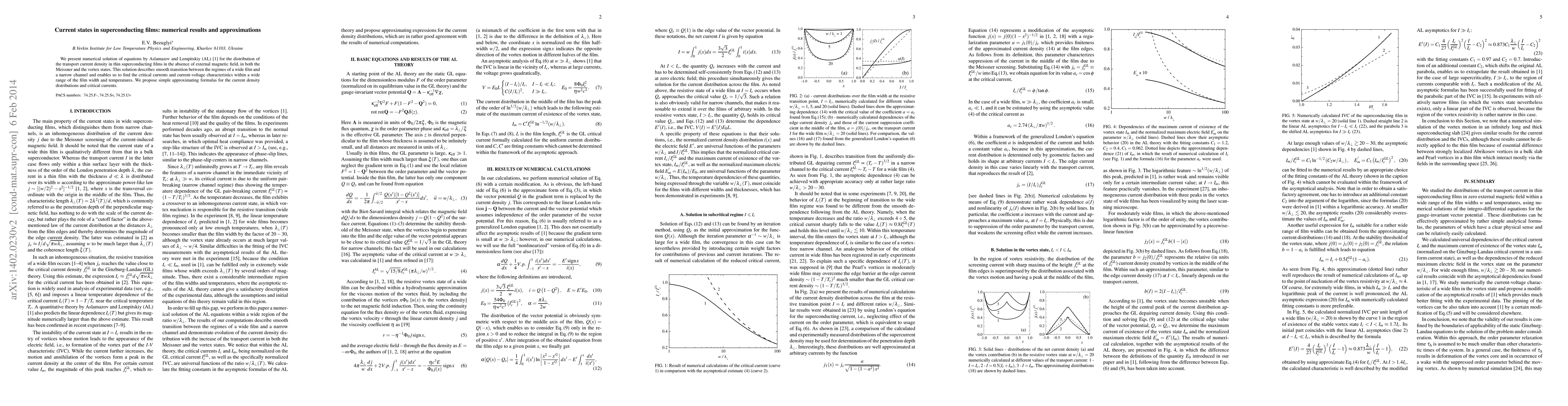 This paper numerically solves Aslamazov and Lempitskiy equations to model the transport current density in superconducting films, detailing transitions between Meissner and vortex states. It also proposes simple approximations for critical currents and current-voltage characteristics across various film widths and temperatures.