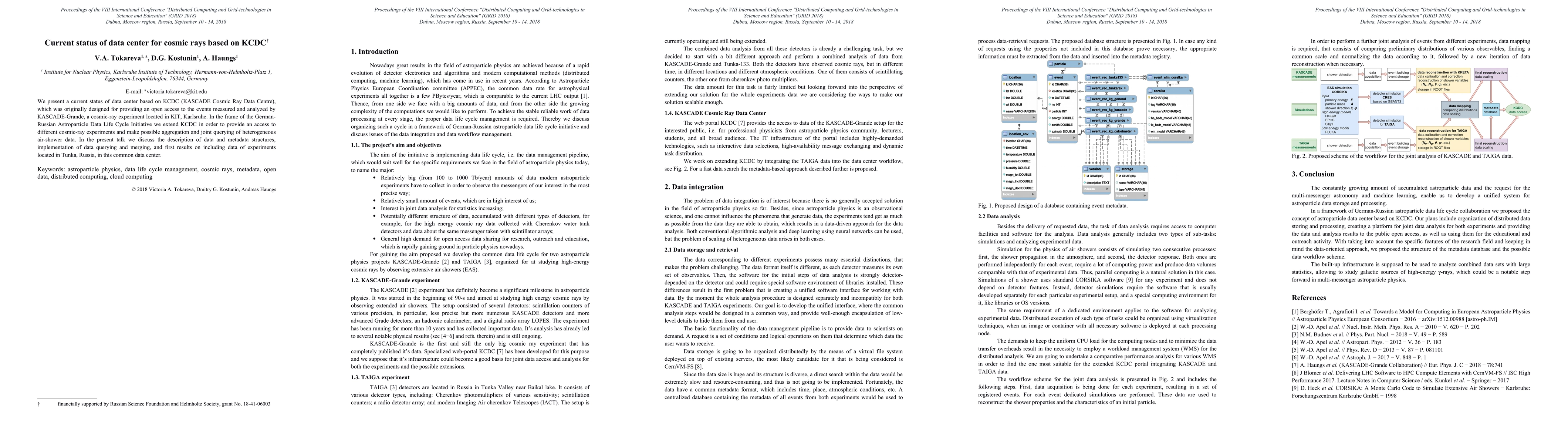 We present a current status of data center based on KCDC (KASCADE Cosmic Ray Data Centre), which was originally designed for providing an open access to the events measured and analyzed by KASCADE-Grande, a cosmic-ray experiment located in KIT, Karlsruhe. In the frame of the German- Russian Astroparticle Data Life Cycle Initiative we extend KCDC in order to provide an access to different cosmic-ray experiments and make possible aggregation and joint querying of heterogeneous air-shower data. In the present talk we discuss the description of data and metadata structures, implementation of data querying and merging, and first results on including data of experiments located in Tunka, Russia, in this common data center.