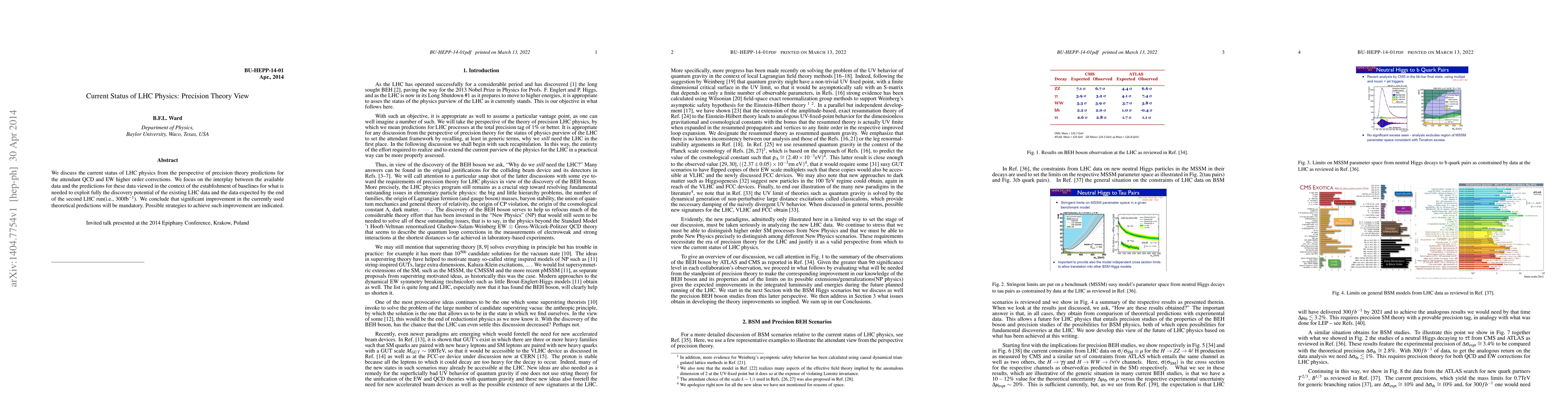 We discuss the current status of LHC physics from the perspective of precision theory predictions for the attendant QCD and EW higher order corrections. We focus on the interplay between the available data and the predictions for these data viewed in the context of the establishment of baselines for what is needed to exploit fully the discovery potential of the existing LHC data and the data expected by the end of the second LHC run (i.e., 300fb$^{-1}$). We conclude that significant improvement in the currently used theoretical predictions will be mandatory. Possible strategies to achieve such improvement are indicated.