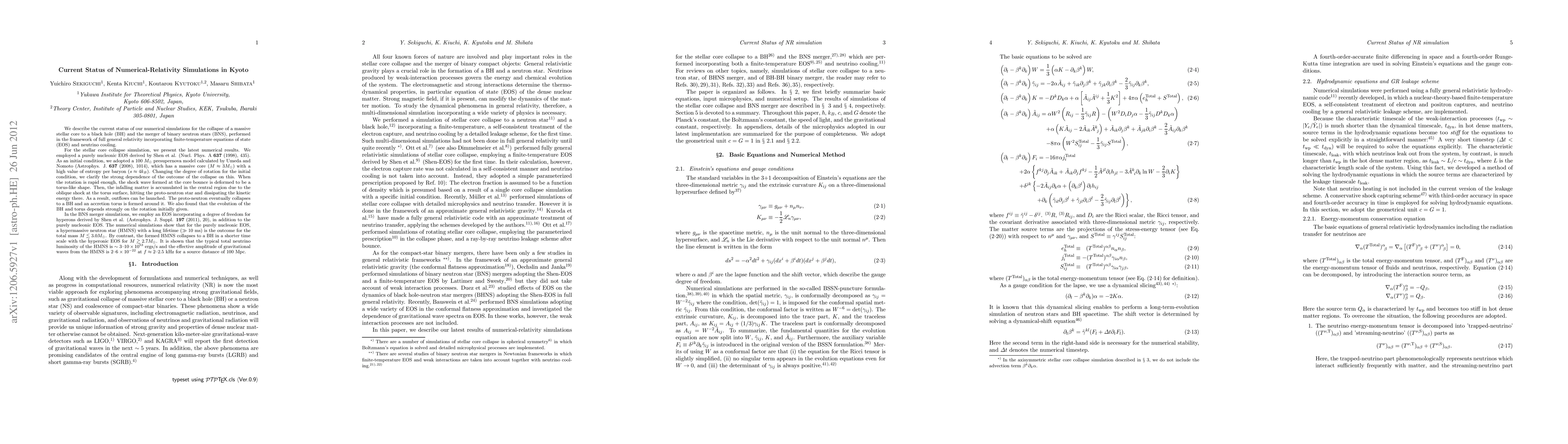 We describe the current status of our numerical simulations for the collapse of a massive stellar core to a BH and the BNS mergers, performed in the framework of full general relativity incorporating finite-temperature EOS and neutrino cooling. For the stellar core collapse simulation, we present the latest numerical results. We employed a purely nucleonic EOS (Shen-EOS). As an initial condition, we adopted a 100 $M_{\odot}$ presupernova model calculated by Umeda and Nomoto. Changing the degree of rotation for the initial condition, we clarify the strong dependence of the outcome of the collapse on this. When the rotation is rapid enough, the shock wave formed at the core bounce is deformed to be a torus-like shape. Then, the infalling matter is accumulated in the central region due to the oblique shock at the torus surface, hitting the PNS and dissipating the kinetic energy there. As a result, outflows can be launched. The PNS eventually collapses to a BH and an accretion torus is formed around it. We also found that the evolution of the BH and torus depends strongly on the rotation initially given. In the BNS merger simulations, we in addition employ an EOS incorporating a degree of freedom for hyperons. The numerical simulations show that for the purely nucleonic EOS, a HMNS with a long lifetime ($\gg 10$ ms) is the outcome for the total mass $M \lesssim 3.0M_{\odot}$. By contrast, the formed HMNS collapses to a BH in a shorter time scale with the hyperonic EOS for $M \gtrsim 2.7M_{\odot}$. It is shown that the typical total neutrino luminosity of the HMNS is $\sim 3$--$10\times 10^{53}$ ergs/s and the effective amplitude of gravitational waves from the HMNS is 2--$6 \times 10^{-22}$ at $f\approx 2$--2.5 kHz for a source distance of 100 Mpc.