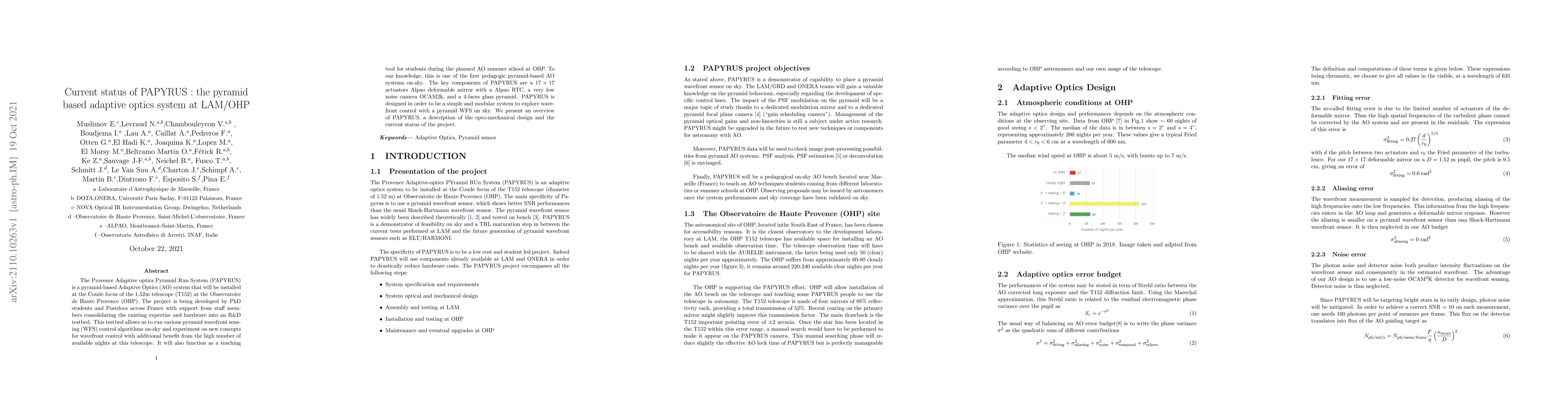 The Provence Adaptive optics Pyramid Run System (PAPYRUS) is a pyramid-based Adaptive Optics (AO) system that will be installed at the Coude focus of the 1.52m telescope (T152) at the Observatoire de Haute Provence (OHP). The project is being developed by PhD students and Postdocs across France with support from staff members consolidating the existing expertise and hardware into an R&D testbed. This testbed allows us to run various pyramid wavefront sensing (WFS) control algorithms on-sky and experiment on new concepts for wavefront control with additional benefit from the high number of available nights at this telescope. It will also function as a teaching tool for students during the planned AO summer school at OHP. To our knowledge, this is one of the first pedagogic pyramid-based AO systems on-sky. The key components of PAPYRUS are a 17x17 actuators Alpao deformable mirror with a Alpao RTC, a very low noise camera OCAM2k, and a 4-faces glass pyramid. PAPYRUS is designed in order to be a simple and modular system to explore wavefront control with a pyramid WFS on sky. We present an overview of PAPYRUS, a description of the opto-mechanical design and the current status of the project.