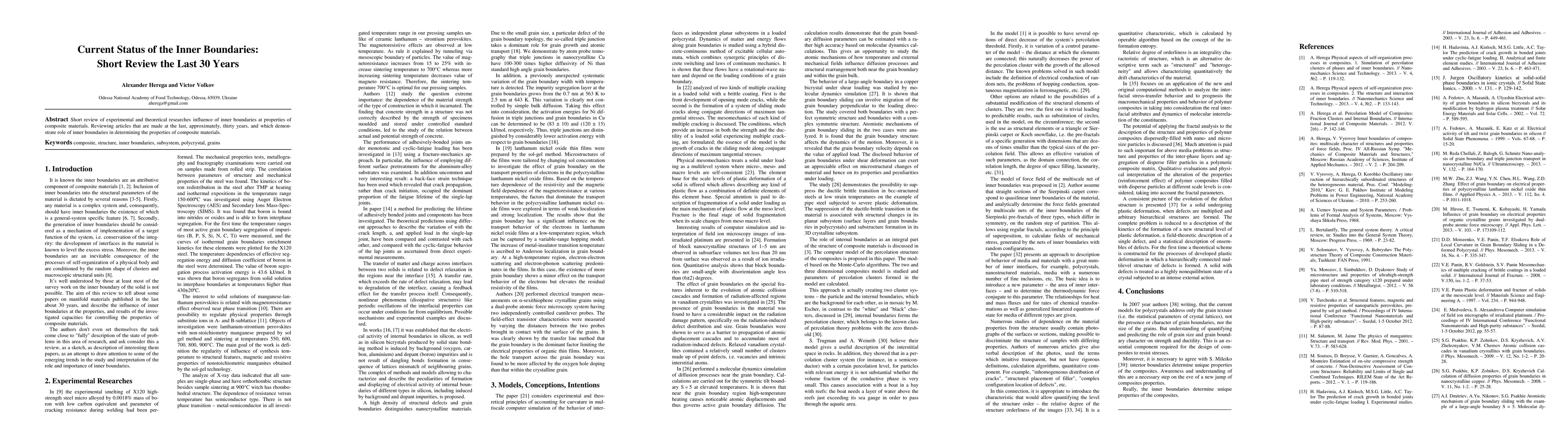 Short review of experimental and theoretical researches influence of inner boundaries at properties of composite materials. Reviewing articles that are made at the last, approximately, thirty years, and which demonstrate role of inner boundaries in determining the properties of composite materials.