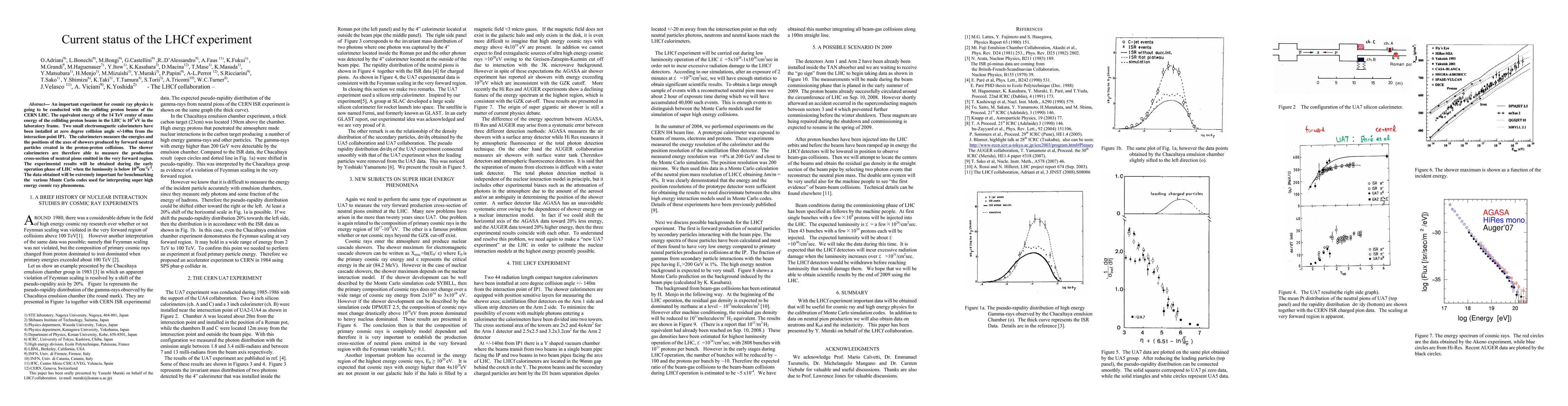 An important experiment for cosmic ray physics is going to be conducted with the colliding proton beams of the CERN LHC. The equivalent energy of the 14 TeV center of mass energy of the colliding proton beams in the LHC is 1017eV in the laboratory frame. Two small electromagnetic calorimeters have been installed at zero degree collision angle +/-140m from the interaction point IP1. The calorimeters measure the energies and the positions of the axes of showers produced by forward neutral particles created in the proton-proton collisions. The shower calorimeters are therefore able to measure the production cross-section of neutral pions emitted in the very forward region. The experimental results will be obtained during the early operation phase of LHC when the luminosity is below 1030cm-2s-1. The data obtained will be extremely important for benchmarking the various Monte Carlo codes used for interpreting super high energy cosmic ray phenomena.