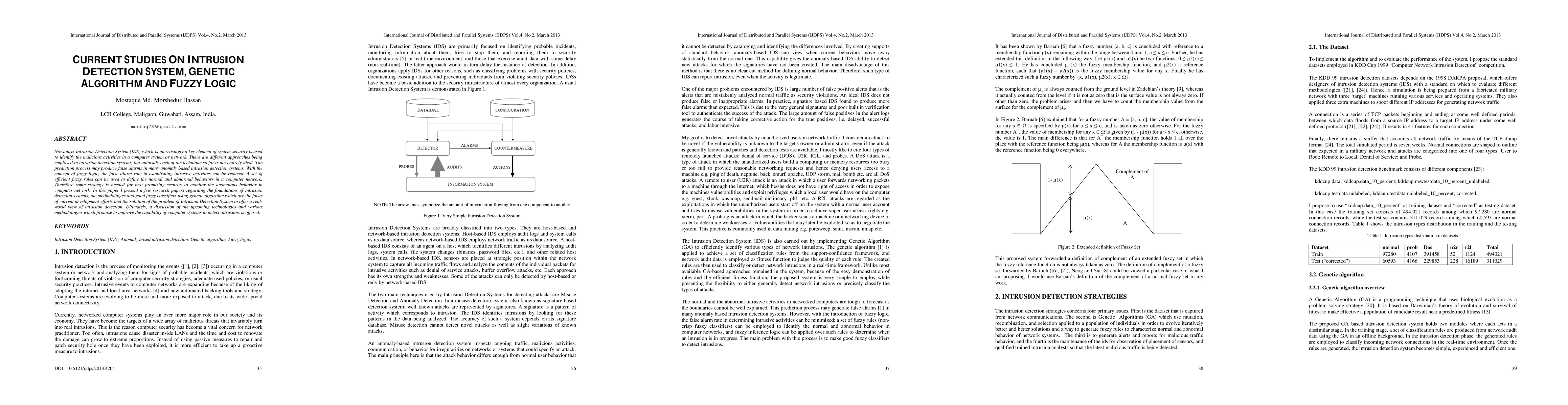 This paper reviews current studies on Intrusion Detection Systems (IDS) that integrate genetic algorithms and fuzzy logic to enhance detection accuracy and reduce false alarms. It discusses the use of fuzzy rules and genetic algorithms to define normal and abnormal network behaviors, and explores future technologies and methodologies aimed at improving intrusion detection capabilities.