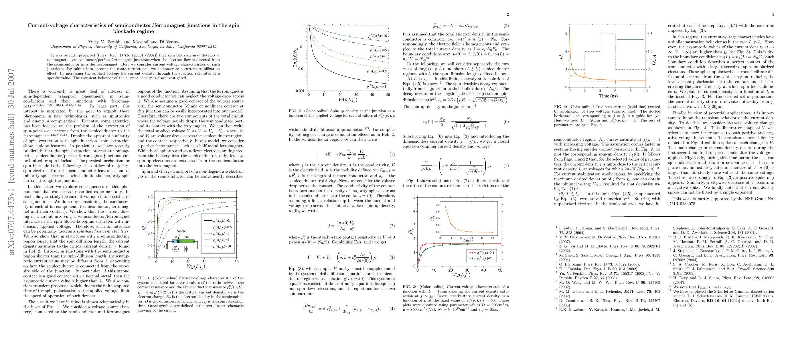 This paper investigates the current-voltage characteristics of semiconductor/ferromagnet junctions in the spin blockade regime, demonstrating a current stabilization effect where the current density saturates at a specific value with increased voltage, and explores the transient behavior of the current density.