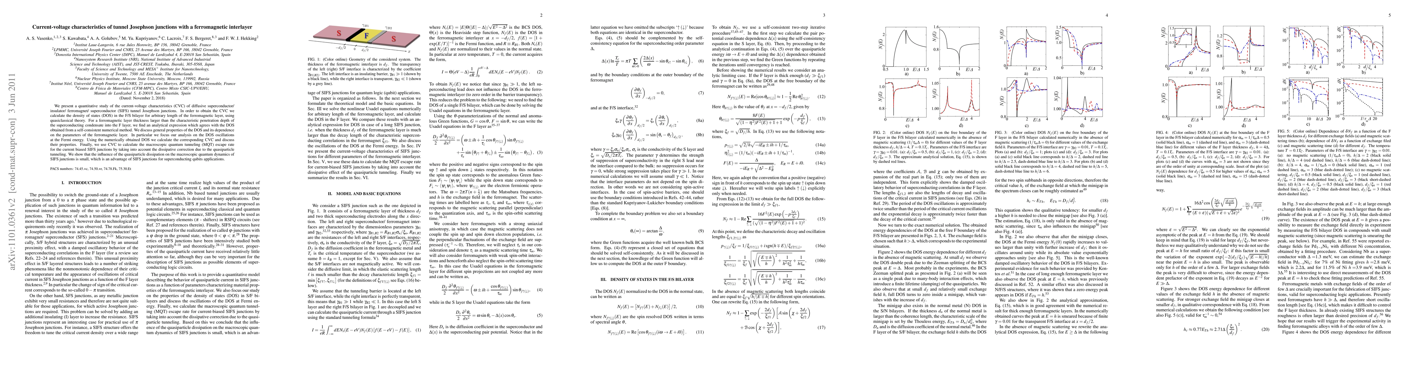 We present a quantitative study of the current-voltage characteristics (CVC) of diffusive superconductor/ insulator/ ferromagnet/ superconductor (SIFS) tunnel Josephson junctions. In order to obtain the CVC we calculate the density of states (DOS) in the F/S bilayer for arbitrary length of the ferromagnetic layer, using quasiclassical theory. For a ferromagnetic layer thickness larger than the characteristic penetration depth of the superconducting condensate into the F layer, we find an analytical expression which agrees with the DOS obtained from a self-consistent numerical method. We discuss general properties of the DOS and its dependence on the parameters of the ferromagnetic layer. In particular we focus our analysis on the DOS oscillations at the Fermi energy. Using the numerically obtained DOS we calculate the corresponding CVC and discuss their properties. Finally, we use CVC to calculate the macroscopic quantum tunneling (MQT) escape rate for the current biased SIFS junctions by taking into account the dissipative correction due to the quasiparticle tunneling. We show that the influence of the quasiparticle dissipation on the macroscopic quantum dynamics of SIFS junctions is small, which is an advantage of SIFS junctions for superconducting qubits applications.