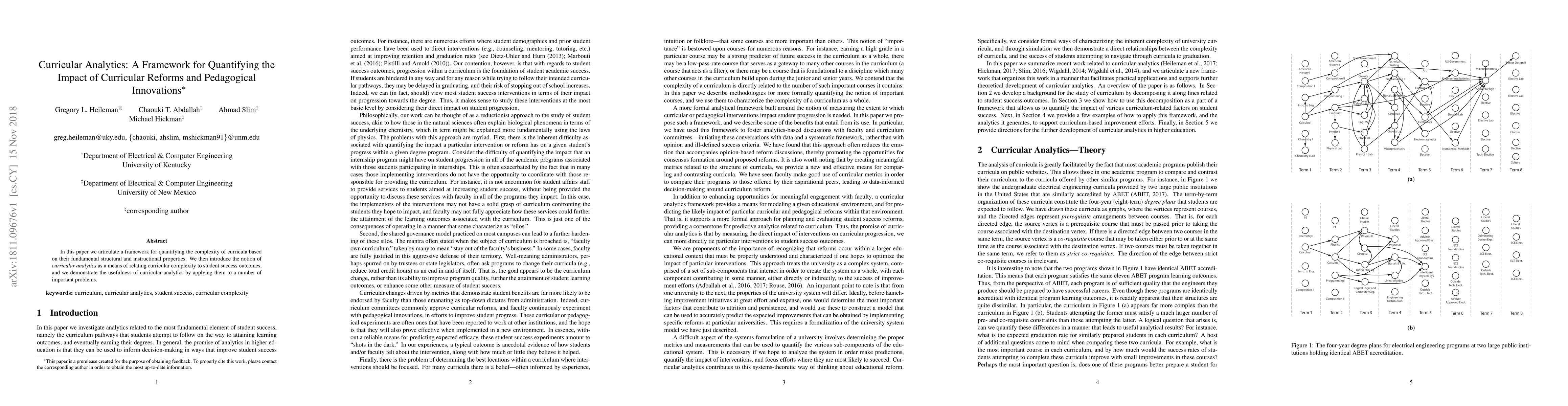 This paper proposes a framework for quantifying curricular complexity through structural and instructional properties, and introduces curricular analytics to link this complexity to student success outcomes, showcasing its application in various educational contexts.