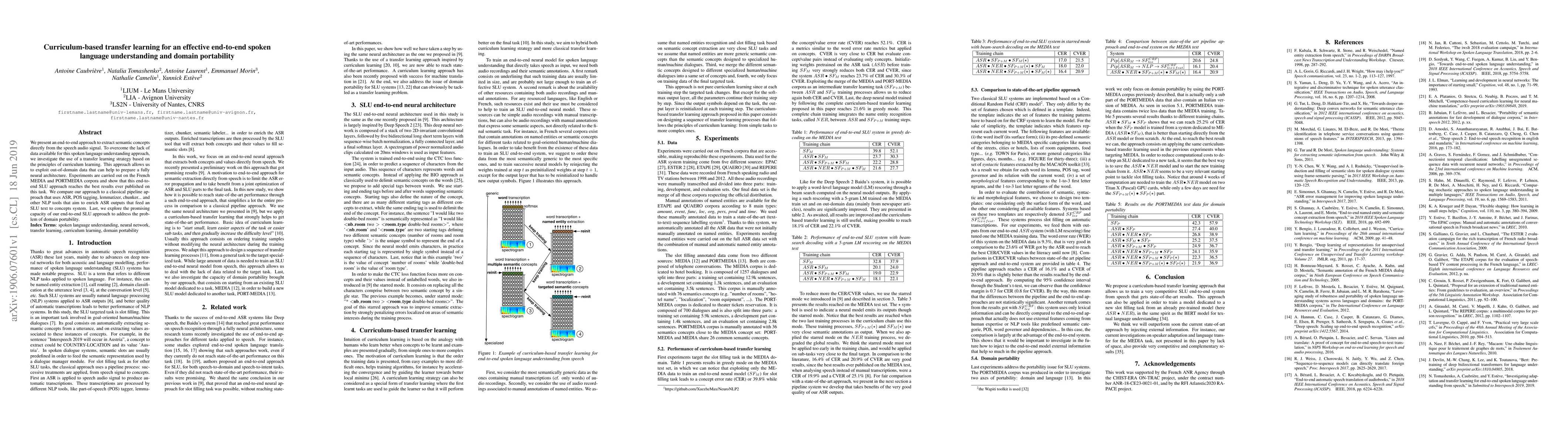This research paper presents an end-to-end approach to spoken language understanding that achieves state-of-the-art results using transfer learning and a curriculum-based strategy, enabling domain portability.