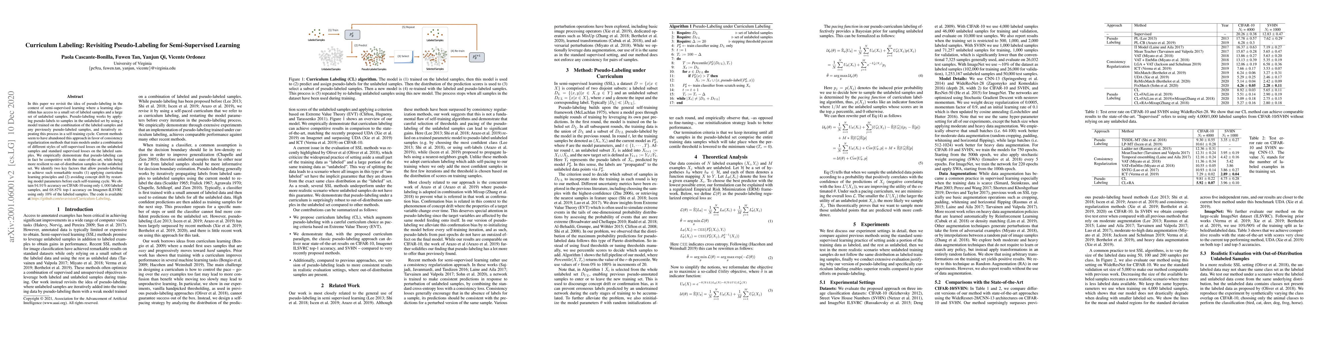 This paper revisits pseudo-labeling for semi-supervised learning, demonstrating its competitiveness with state-of-the-art methods by applying curriculum learning and avoiding concept drift. Achieved accuracies include 94.91% on CIFAR-10 with 4,000 labeled samples and 68.87% top-1 accuracy on ImageNet with 10% labeled samples.