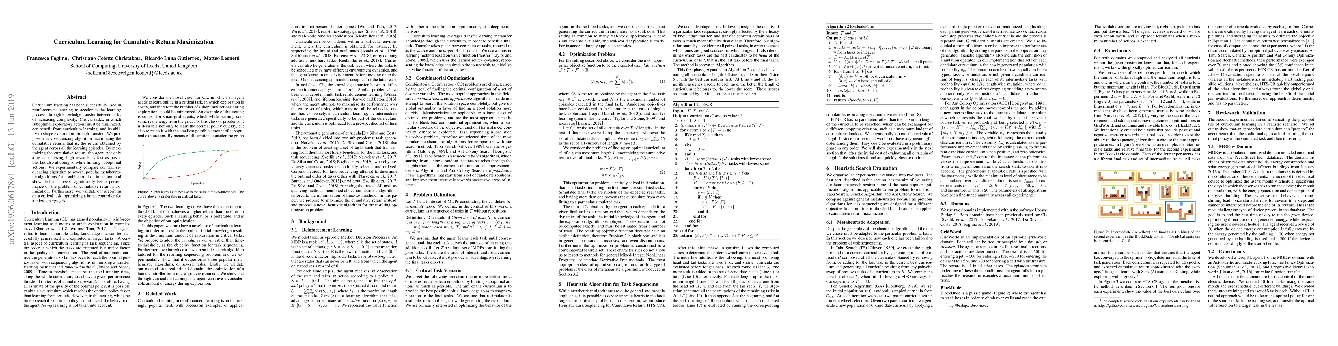 Researchers propose a task sequencing algorithm for curriculum learning to maximize cumulative return in reinforcement learning, outperforming popular metaheuristic algorithms.