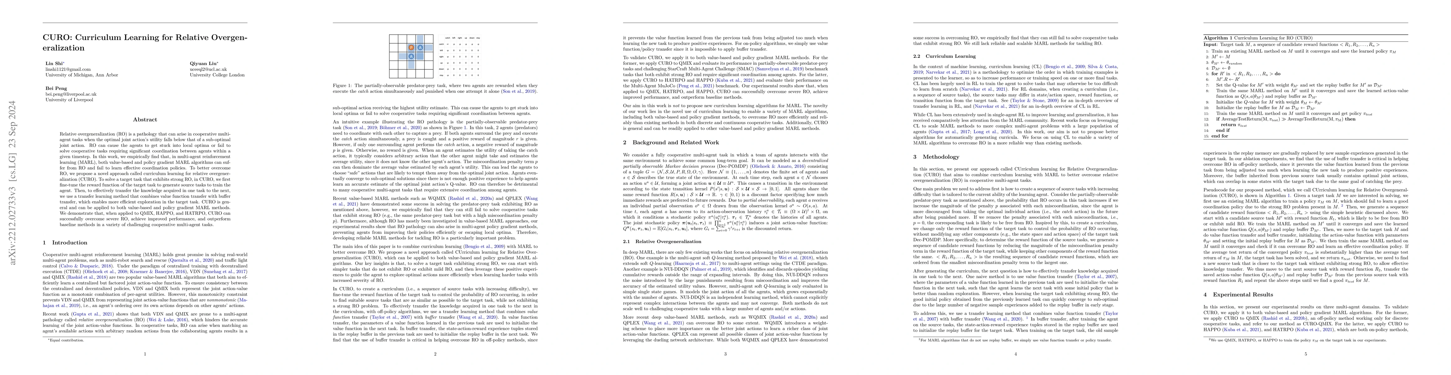 This paper proposes a curriculum learning approach called CURO to tackle relative overgeneralization (RO) in multi-agent reinforcement learning (MARL). CURO fine-tunes the reward function to create tailored source tasks and employs transfer learning combining value function and buffer transfer to enhance knowledge transfer, significantly improving performance in cooperative tasks.