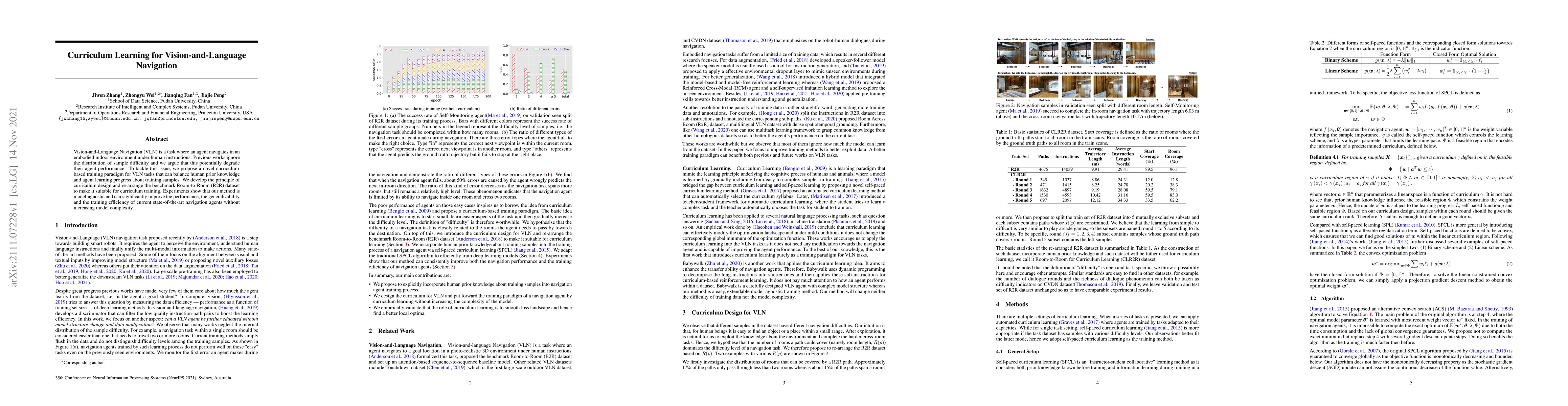 This paper proposes a curriculum-based training paradigm for Vision-and-Language Navigation (VLN) to address the issue of sample difficulty distribution, significantly improving performance, generalizability, and training efficiency without increasing model complexity. The method is model-agnostic and re-arranges the R2R dataset for effective curriculum training.