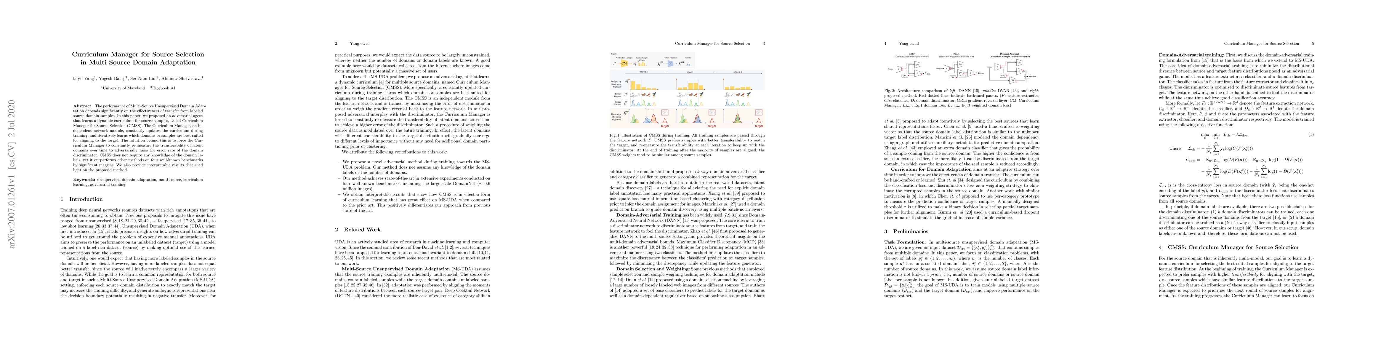 This paper introduces the Curriculum Manager for Source Selection (CMSS), an adversarial agent that dynamically curates source samples for Multi-Source Unsupervised Domain Adaptation, significantly improving transfer performance without requiring domain labels. CMSS outperforms other methods on four benchmarks, demonstrating its effectiveness through interpretable results.