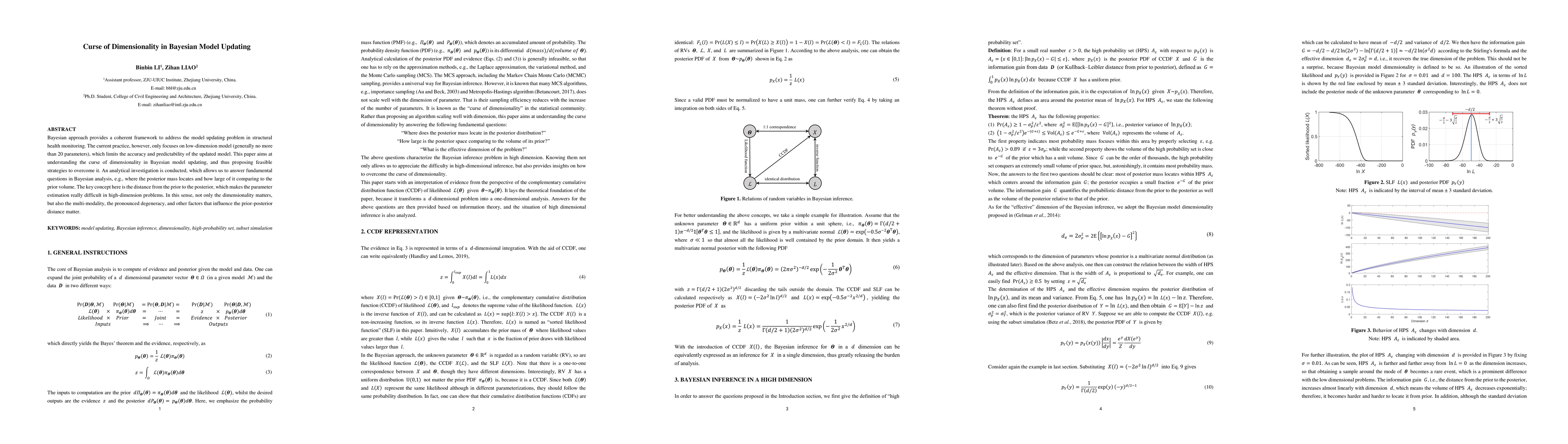 The paper investigates the 'curse of dimensionality' in Bayesian model updating by analyzing the posterior distribution through the complementary cumulative distribution function (CCDF) and the sorted likelihood function (SLF), transforming a high-dimensional problem into a one-dimensional analysis.