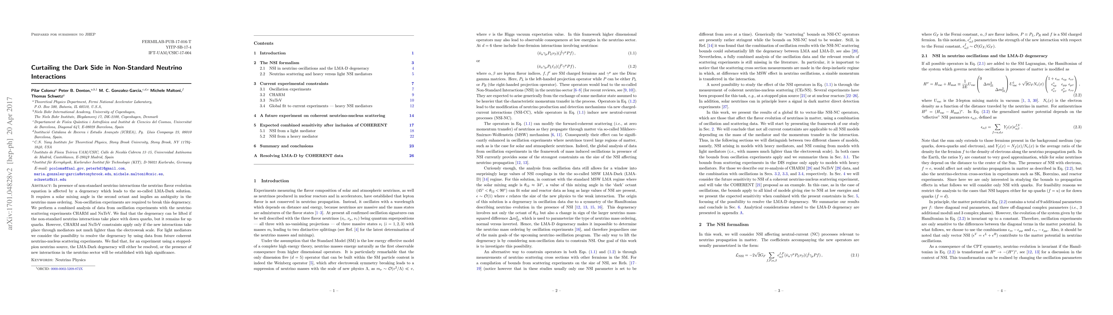 This paper explores how non-standard neutrino interactions can affect the LMA-Dark solution, which introduces ambiguity in neutrino mass ordering. It finds that while current scattering experiments can lift this degeneracy for down quarks, future coherent neutrino-nucleus scattering experiments may resolve it for light mediators.
