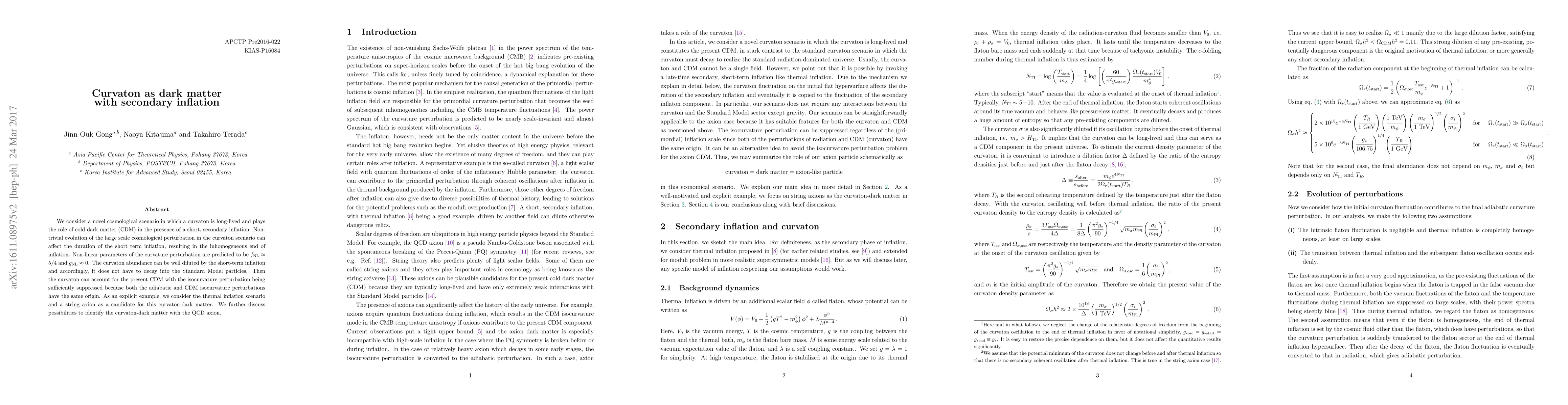 This paper explores a cosmological model where a long-lived curvaton serves as cold dark matter and supports a secondary inflation, predicting specific non-linear parameters for curvature perturbations. The curvaton's abundance is diluted by the secondary inflation, allowing it to account for present CDM without decaying into Standard Model particles.