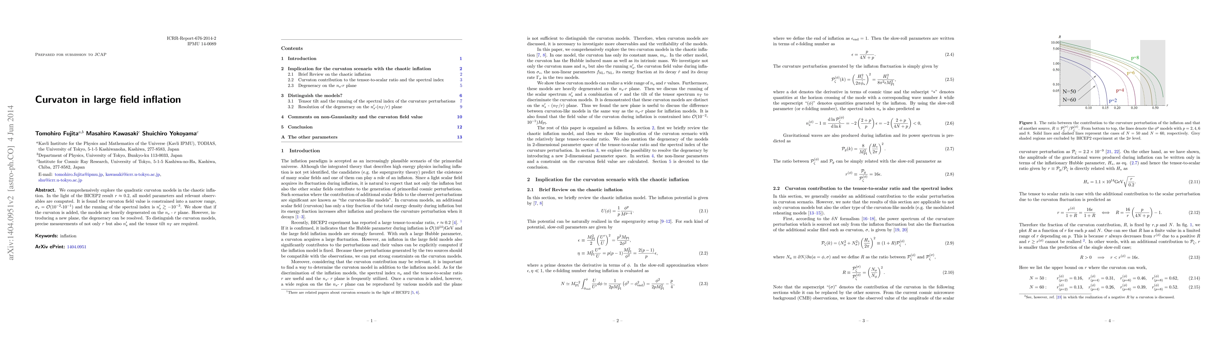 We comprehensively explore the quadratic curvaton models in the chaotic inflation. In the light of the BICEP2 result $r \approx 0.2$, all model parameters and relevant observables are computed. It is found the curvaton field value is constrained into a narrow range, $\sigma_* = \mathcal{O}(10^{-2}$-$10^{-1})$ and the running of the spectral index is $n_s' \gtrsim -10^{-3}$. We show that if the curvaton is added, the models are heavily degenerated on the $n_s$ - $r$ plane. However, introducing a new plane, the degeneracy can be resolved. To distinguish the curvaton models, precise measurements of not only $r$ but also $n_s'$ and the tensor tilt $n_T$ are required.