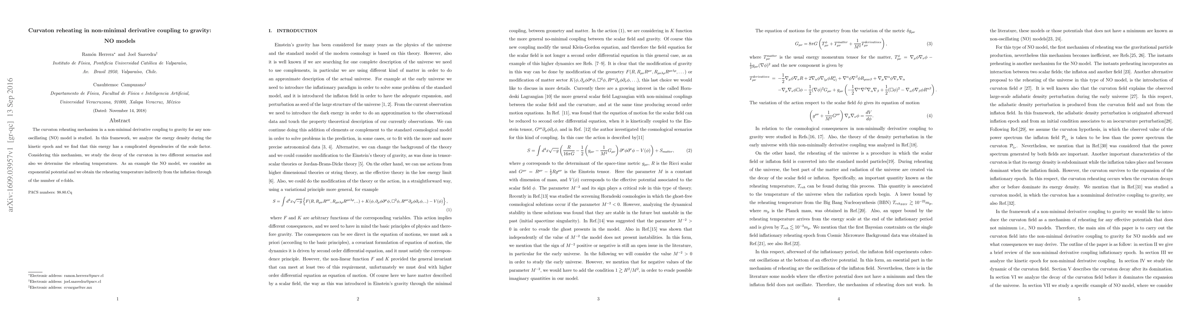 The curvaton reheating mechanism in a non-minimal derivative coupling to gravity for any non-oscillating (NO) model is studied. In this framework, we analyze the energy density during the kinetic epoch and we find that this energy has a complicated dependencies of the scale factor. Considering this mechanism, we study the decay of the curvaton in two different scenarios and also we determine the reheating temperatures. As an example the NO model, we consider an exponential potential and we obtain the reheating temperature indirectly from the inflation through of the number of e-folds.