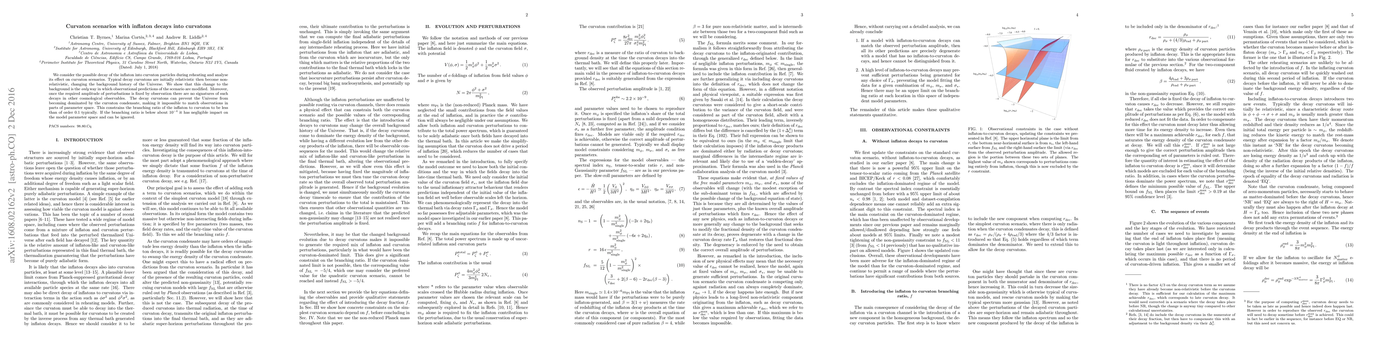 This paper examines curvaton scenarios where the inflaton decays into curvaton particles during reheating, showing that such decays modify observational predictions only by altering the background history of the Universe. The branching ratio of the inflaton to curvaton must be less than 0.1 to avoid dominating the Universe, with negligible effects below $10^{-4}$.