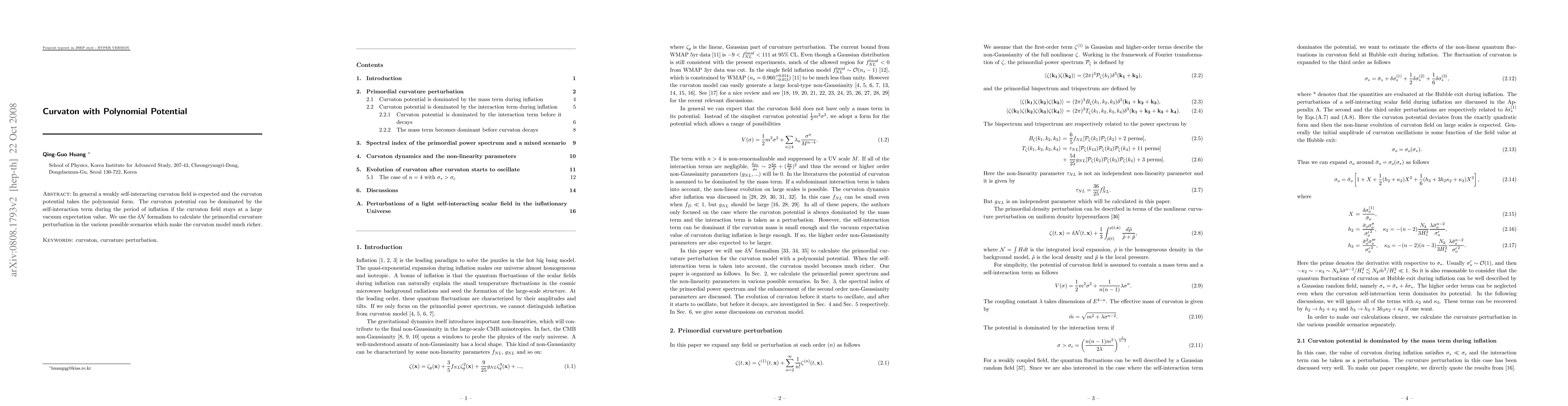 This paper explores the curvaton model with a polynomial potential, investigating how self-interactions can dominate during inflation when the curvaton field is at a large vacuum expectation value. The study employs the $\delta {\cal N}$ formalism to analyze the primordial curvature perturbation in different scenarios, enriching the curvaton model.