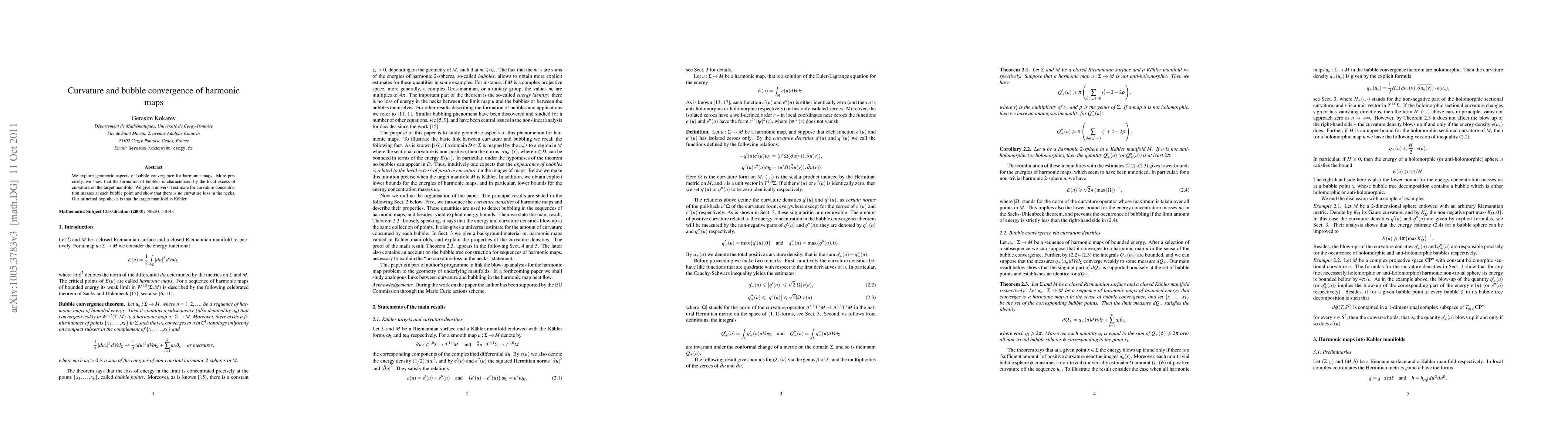 This paper explores how curvature affects bubble convergence in harmonic maps, showing that excess curvature at bubble points is a key factor and providing a universal estimate for curvature concentration masses.