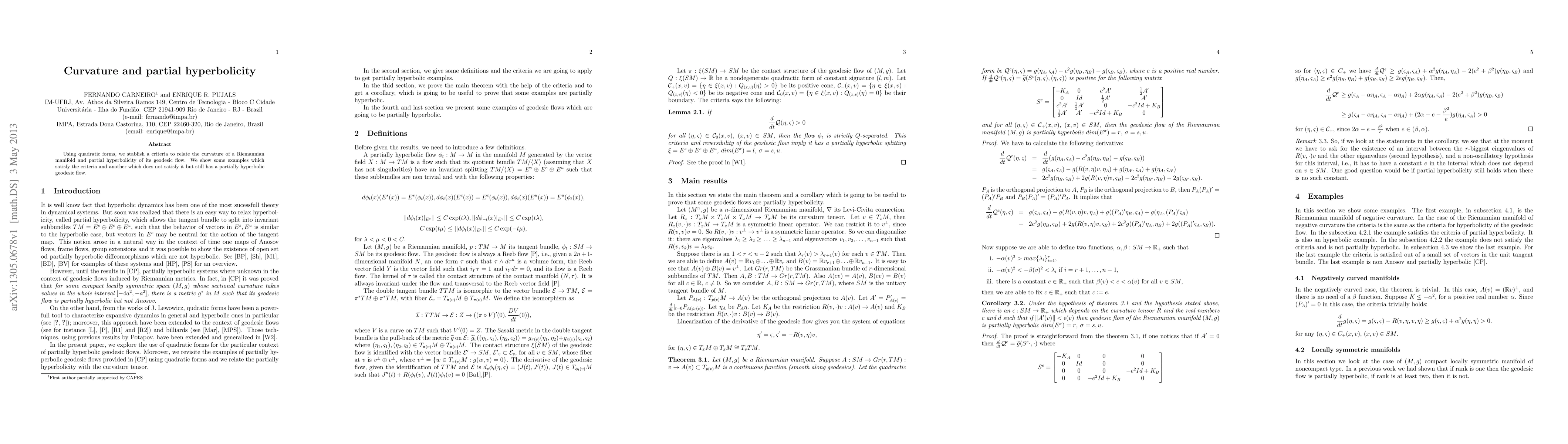 Using quadratic forms, we stablish a criteria to relate the curvature of a Riemannian manifold and partial hyperbolicity of its geodesic flow. We show some examples which satisfy the criteria and another which does not satisfy it but still has a partially hyperbolic geodesic flow.
