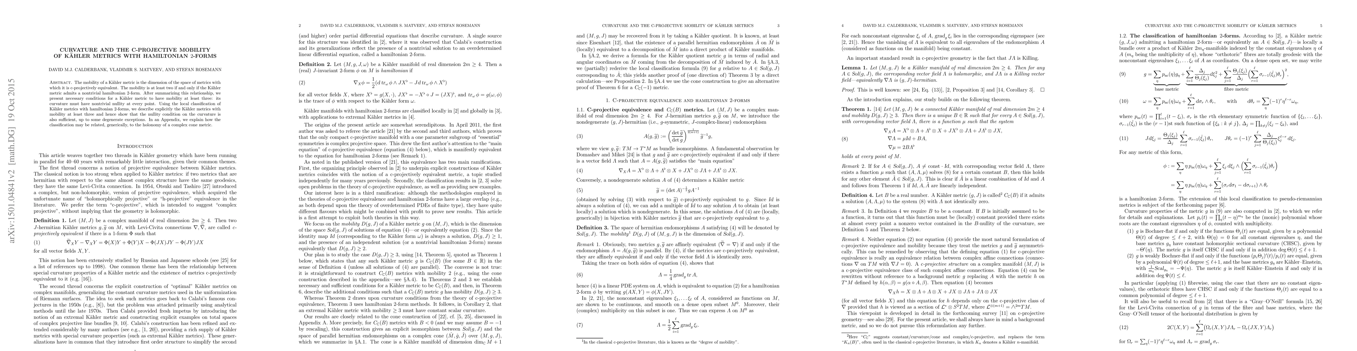 The mobility of a Kaehler metric is the dimension of the space of metrics with which it is c-projectively equivalent. The mobility is at least two if and only if the Kaehler metric admits a nontrivial hamiltonian 2-form. After summarizing this relationship, we present necessary conditions for a Kaehler metric to have mobility at least three: its curvature must have nontrivial nullity at every point. Using the local classification of Kaehler metrics with hamiltonian 2-forms, we describe explicitly the Kaehler metrics with mobility at least three and hence show that the nullity condition on the curvature is also sufficient, up to some degenerate exceptions. In an Appendix, we explain how the classification may be related, generically, to the holonomy of a complex cone metric.