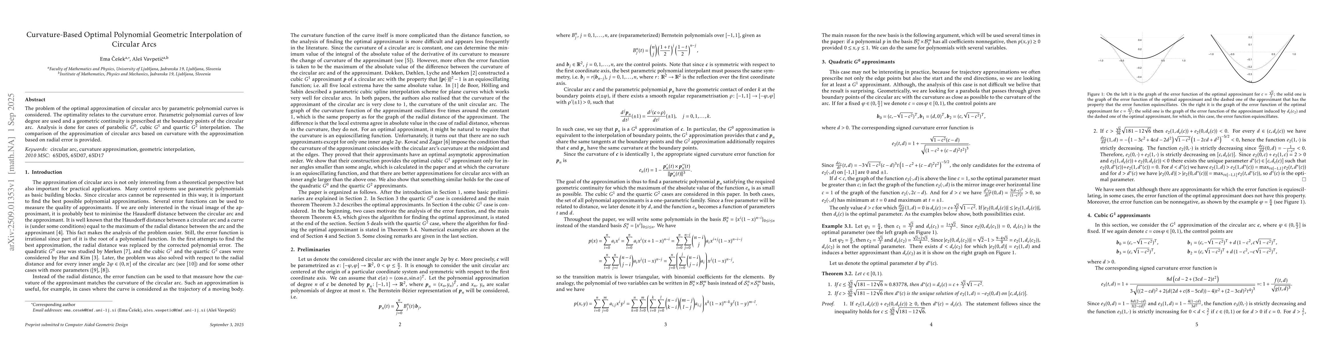 The problem of the optimal approximation of circular arcs by parametric polynomial curves is considered. The optimality relates to the curvature error. Parametric polynomial curves of low degree are used and a geometric continuity is prescribed at the boundary points of the circular arc. Analysis is done for cases of parabolic $G^0$, cubic $G^1$ and quartic $G^2$ interpolation. The comparison of the approximation of circular arcs based on curvature with the approximation based on radial error is provided.