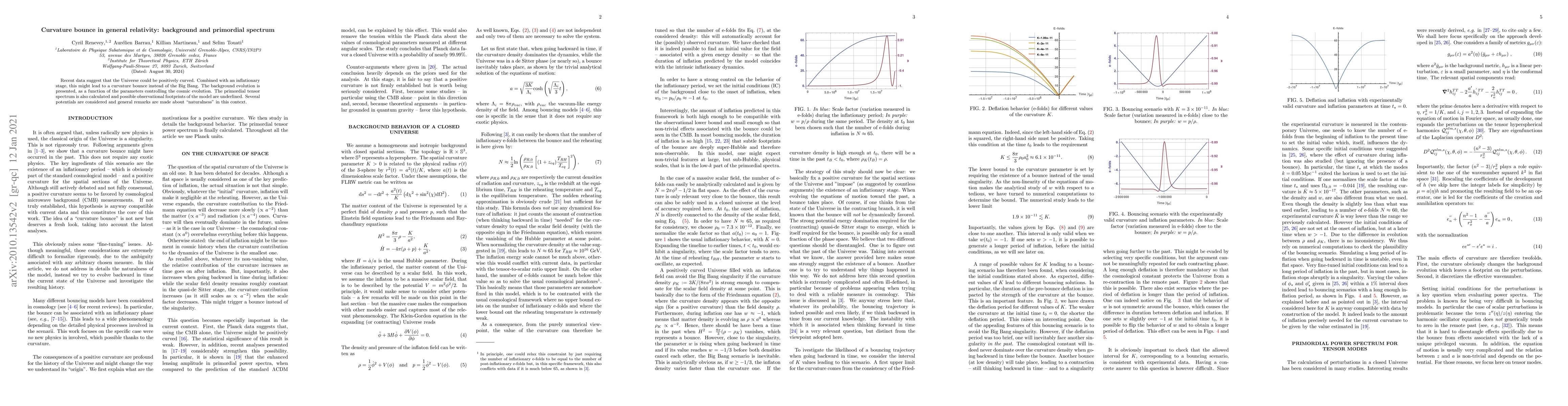 Recent data suggest that the Universe could be positively curved. Combined with an inflationary stage, this might lead to a curvature bounce instead of the Big Bang. The background evolution is presented, as a function of the parameters controlling the cosmic evolution. The primordial tensor spectrum is also calculated and possible observational footprints of the model are underlined. Several potentials are considered and general remarks are made about "naturalness" in this context.