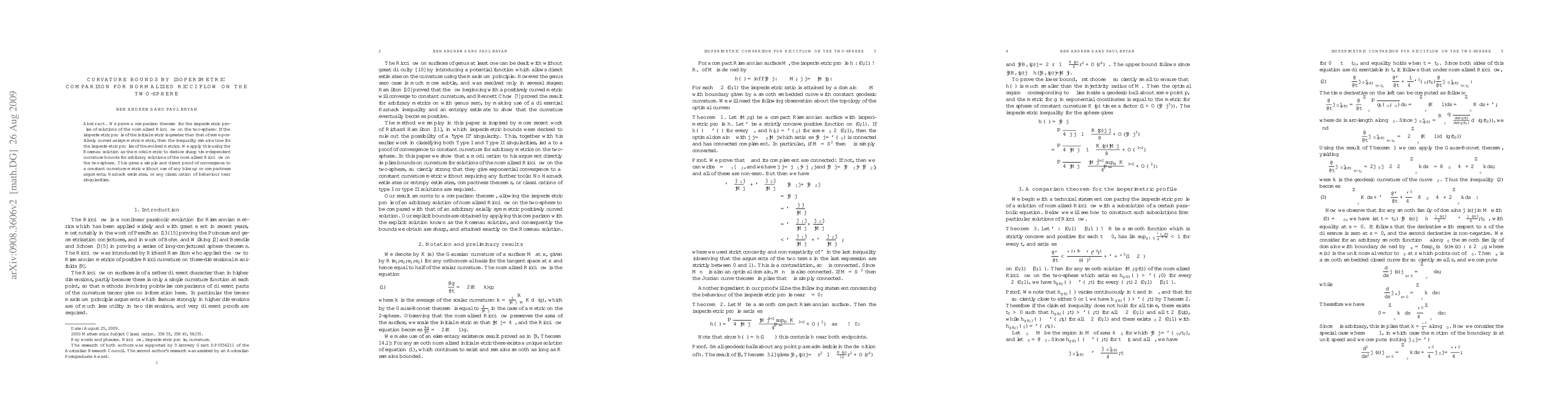 We prove a comparison theorem for the isoperimetric profiles of solutions of the normalized Ricci flow on the two-sphere: If the isoperimetric profile of the initial metric is greater than that of some positively curved axisymmetric metric, then the inequality remains true for the isoperimetric profiles of the evolved metrics. We apply this using the Rosenau solution as the model metric to deduce sharp time-dependent curvature bounds for arbitrary solutions of the normalized Ricci flow on the two-sphere. This gives a simple and direct proof of convergence to a constant curvature metric without use of any blowup or compactness arguments, Harnack estimates, or any classification of behaviour near singularities.