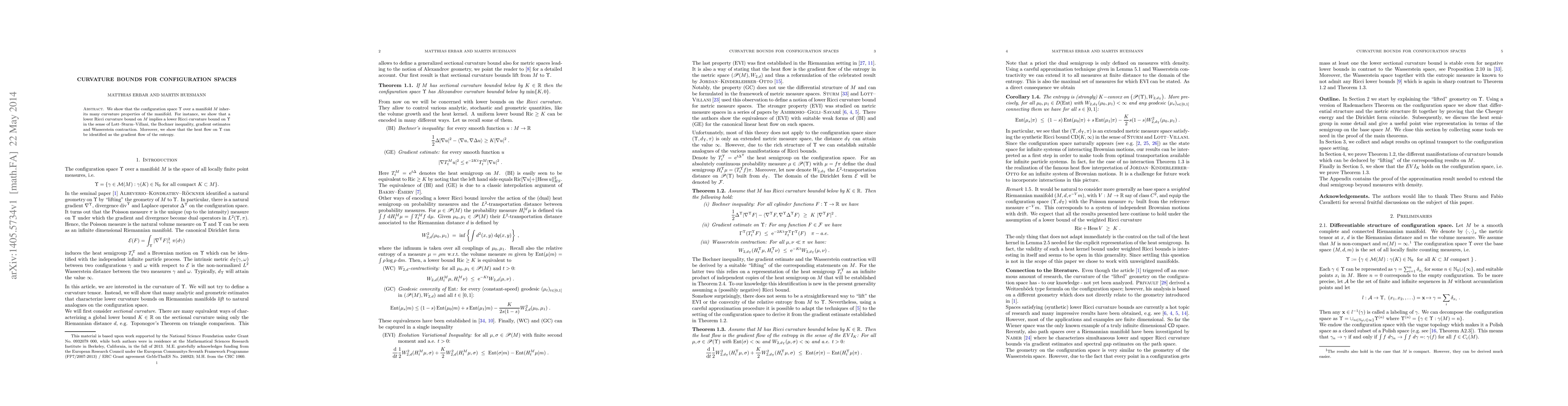 The paper shows that a manifold's curvature properties can be applied to its configuration space, leading to bounds on curvature, gradient estimates, and connections to heat flow and entropy.