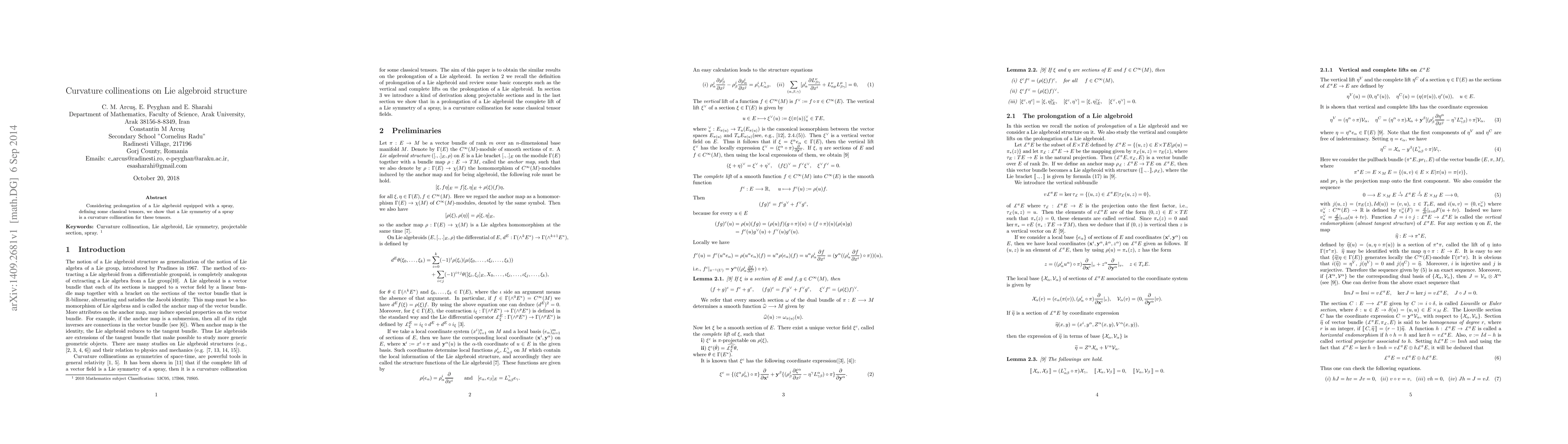 Considering prolongation of a Lie algebroid equipped with a spray, defining some classical tensors, we show that a Lie symmetry of a spray is a curvature collineation for these tensors.