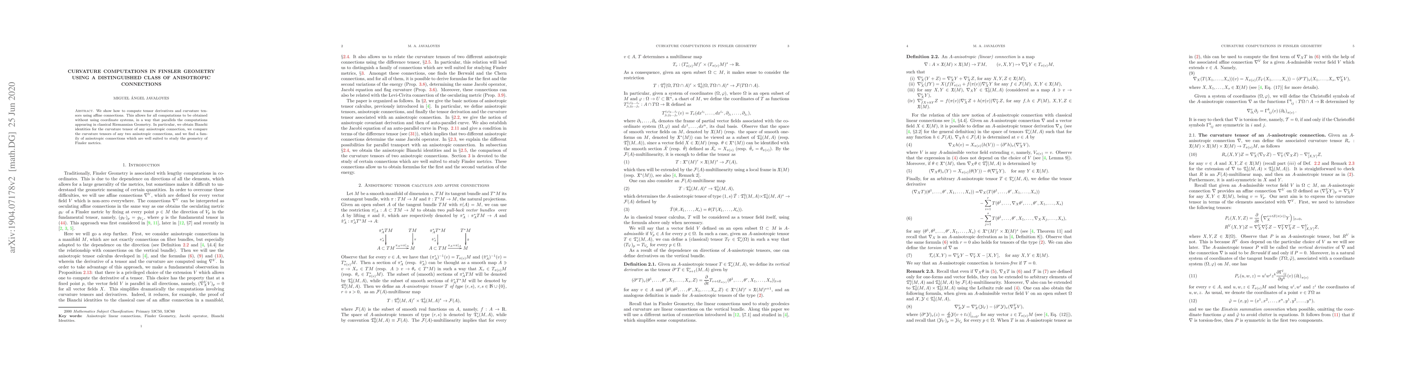 We show how to compute tensor derivatives and curvature tensors using affine connections. This allows for all computations to be obtained without using coordinate systems, in a way that parallels the computations appearing in classical Riemannian Geometry. In particular, we obtain Bianchi identities for the curvature tensor of any anisotropic connection, we compare the curvature tensors of any two anisotropic connections, and we find a family of anisotropic connections which are well suited to study the geometry of Finsler metrics.
