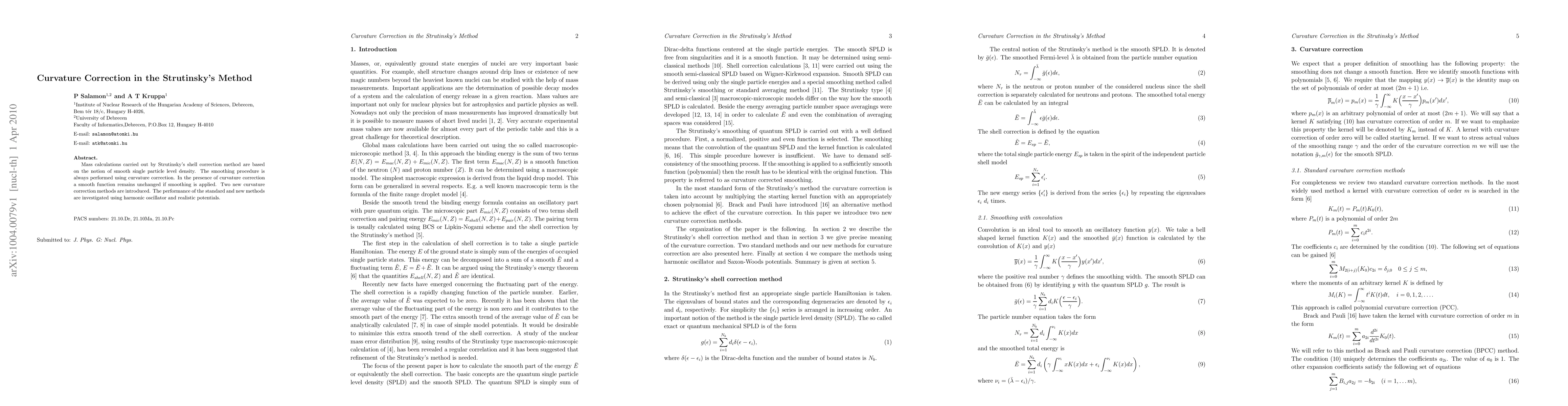 Researchers developed two new curvature correction methods to improve Strutinsky's shell correction method for mass calculations in nuclear physics. The study investigated the performance of these methods using harmonic oscillator and realistic potentials.