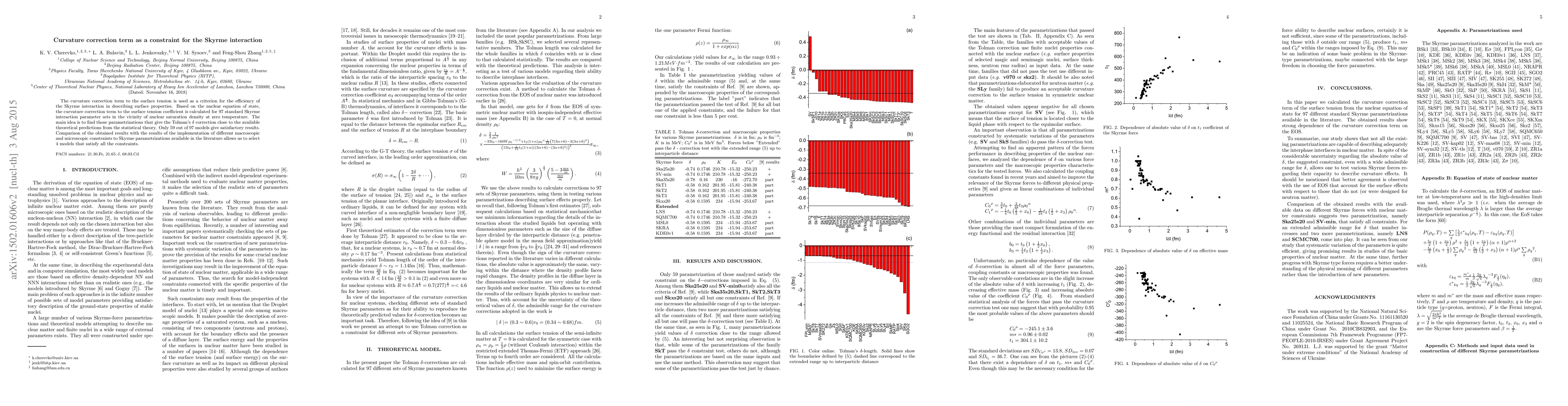 The curvature correction term to the surface tension is used as a criterion for the efficiency of the Skyrme interaction in describing surface properties. Based on the nuclear equation of state, the curvature correction term to the surface tension coefficient is calculated for 97 standard Skyrme interaction parameter sets in the vicinity of nuclear saturation density at zero temperature. The main idea is to find those parametrizations that give the Tolman's $\delta$ correction close to the available theoretical predictions from the statistical theory. Only 59 out of 97 models give satisfactory results. Comparison of the obtained results with the results of the implementation of different macroscopic and microscopic constraints to Skyrme parametrizations available in the literature allows us to select 4 models that satisfy all the constraints.