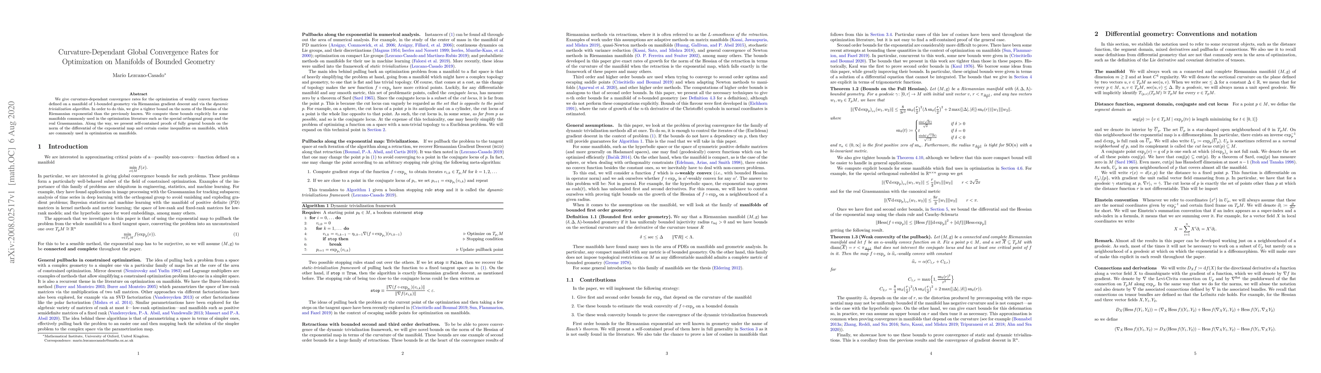 We give curvature-dependant convergence rates for the optimization of weakly convex functions defined on a manifold of 1-bounded geometry via Riemannian gradient descent and via the dynamic trivialization algorithm. In order to do this, we give a tighter bound on the norm of the Hessian of the Riemannian exponential than the previously known. We compute these bounds explicitly for some manifolds commonly used in the optimization literature such as the special orthogonal group and the real Grassmannian. Along the way, we present self-contained proofs of fully general bounds on the norm of the differential of the exponential map and certain cosine inequalities on manifolds, which are commonly used in optimization on manifolds.