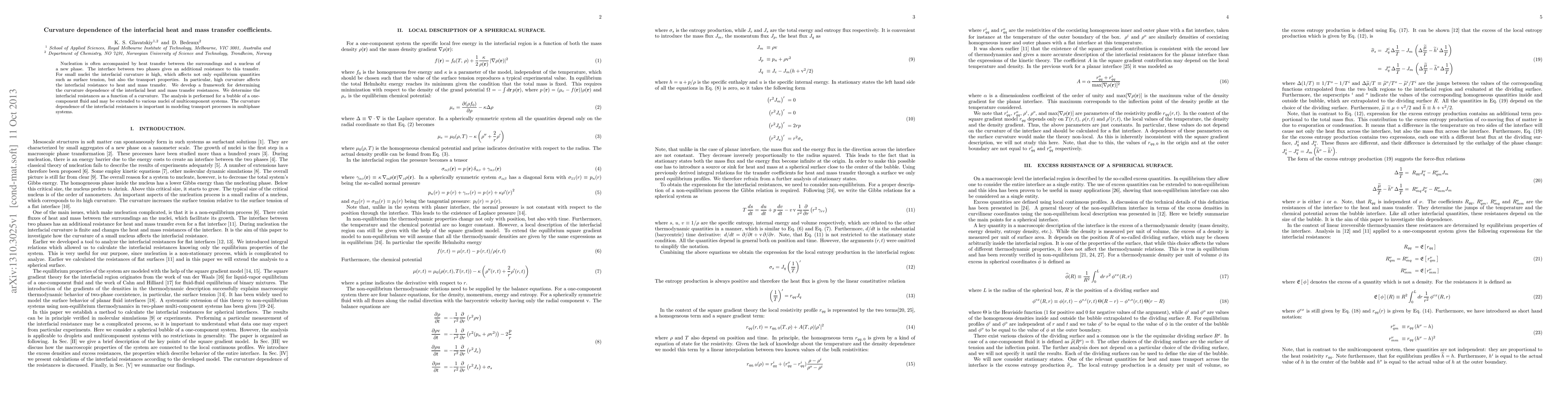 This paper develops a framework to determine how the curvature of a nucleus affects interfacial heat and mass transfer resistances, particularly for small nuclei where high curvature influences transport properties. The analysis focuses on a bubble in a one-component fluid but can be extended to multicomponent systems, highlighting its significance in modeling transport processes in multiphase systems.