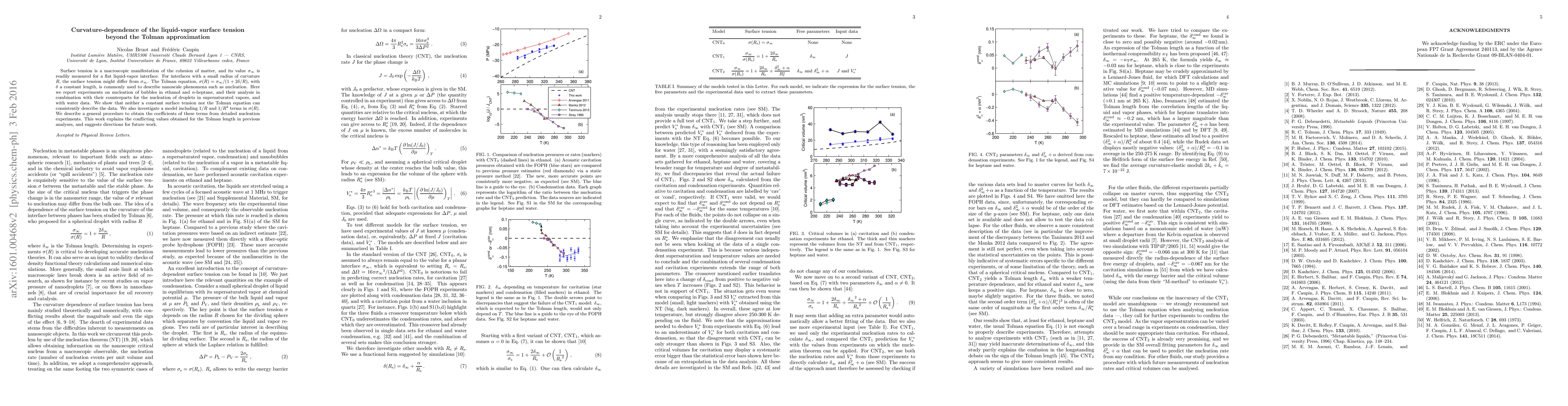 Researchers found that traditional models of surface tension, including the Tolman equation, fail to accurately describe the behavior of liquid-vapor interfaces with small curvatures. They propose a new model incorporating $1/R$ and $1/R^2$ terms to better explain their findings.