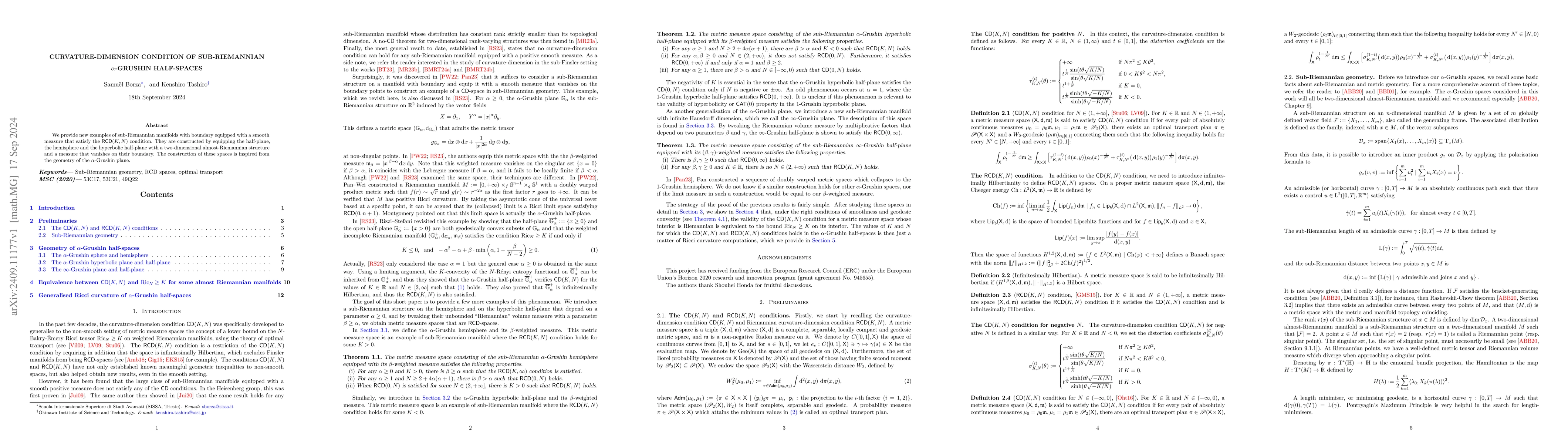 This paper introduces new examples of sub-Riemannian manifolds with boundary satisfying the RCD(K, N) condition, constructed by adapting the geometry of the α-Grushin plane to half-planes, hemispheres, and hyperbolic half-planes with a specific measure.