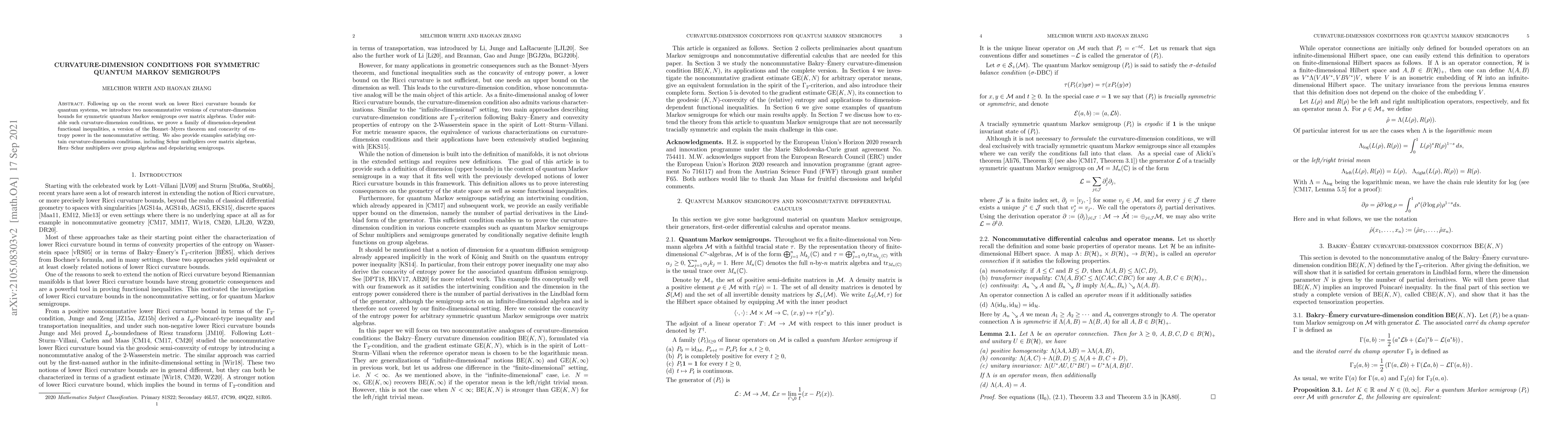 This paper introduces noncommutative curvature-dimension conditions for symmetric quantum Markov semigroups, proving dimension-dependent functional inequalities and concavity of entropy power. Examples include Schur multipliers, Herz-Schur multipliers, and depolarizing semigroups.