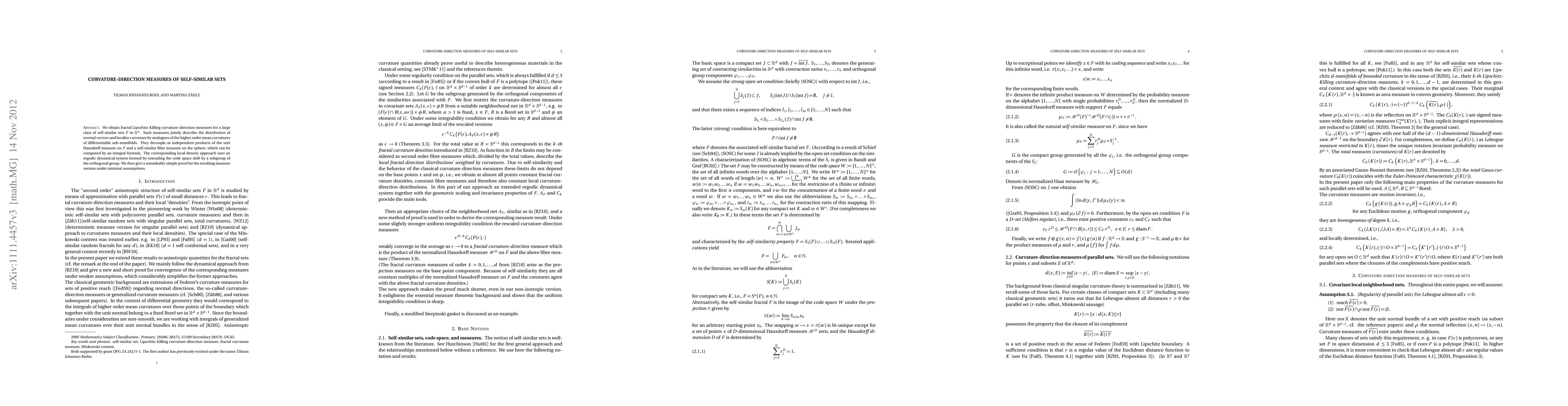 This paper explores fractal Lipschitz-Killing curvature-direction measures for self-similar sets in R^d, providing a method to describe the distribution of normal vectors and curvature. The measures are decomposed into independent products of the unit Hausdorff measure and a self-similar fibre measure on the sphere, computed via an integral formula.