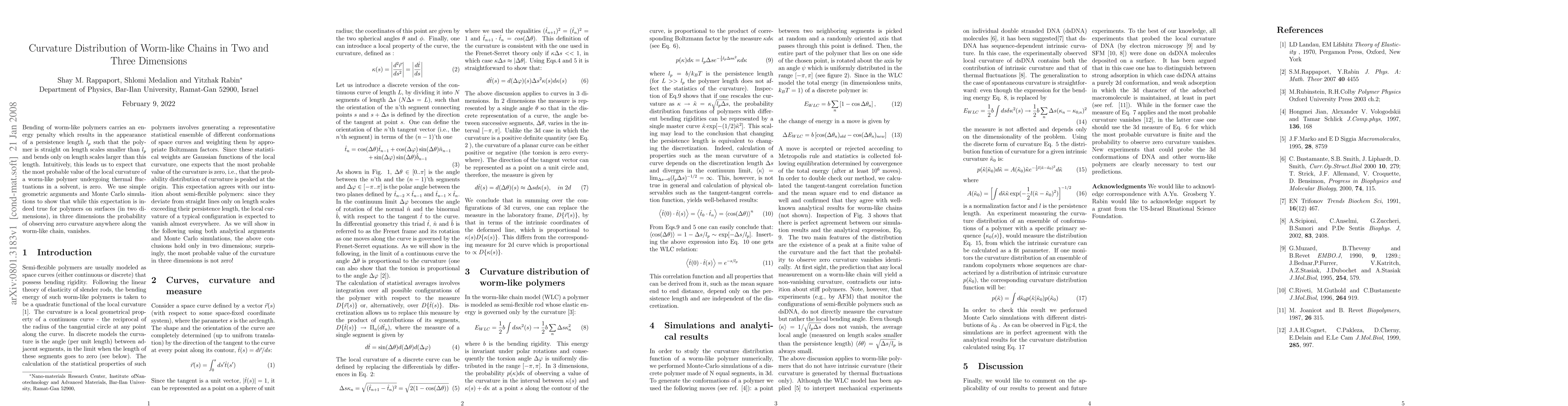 This paper investigates the curvature distribution of worm-like polymers, finding that while the most probable local curvature is zero in two dimensions, in three dimensions, the probability of zero curvature anywhere along the polymer chain diminishes. Monte Carlo simulations support the geometric arguments used to reach this conclusion.