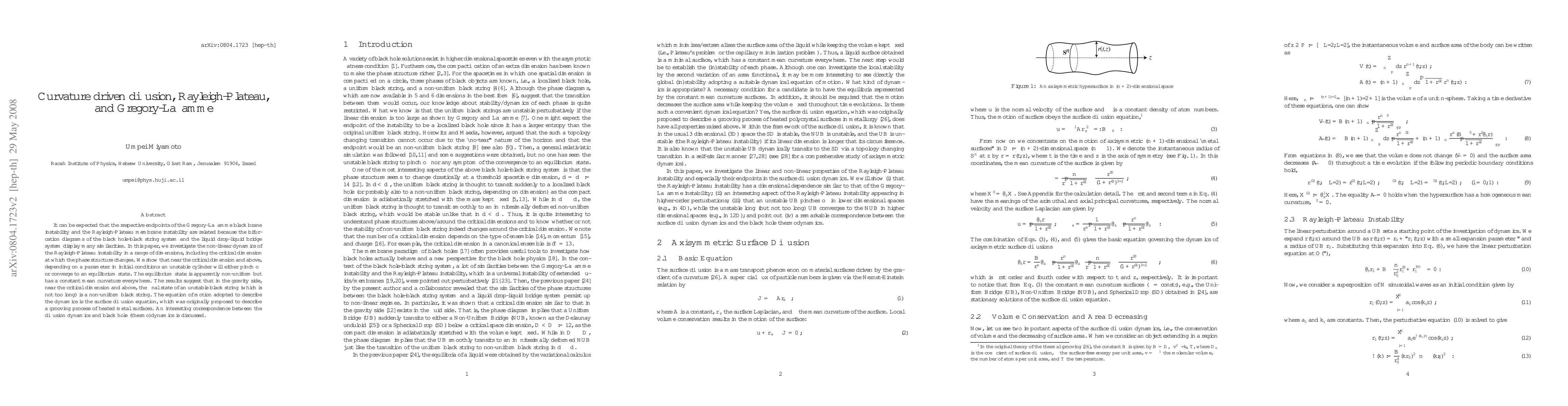 It can be expected that the respective endpoints of the Gregory-Laflamme black brane instability and the Rayleigh-Plateau membrane instability are related because the bifurcation diagrams of the black hole-black string system and the liquid drop-liquid bridge system display many similarities. In this paper, we investigate the non-linear dynamics of the Rayleigh-Plateau instability in a range of dimensions, including the critical dimension at which the phase structure changes. We show that near the critical dimension and above, depending on a parameter in initial conditions an unstable cylinder will either pinch off or converge to an equilibrium state. The equilibrium state is apparently non-uniform but has a constant mean curvature everywhere. The results suggest that in the gravity side, near the critical dimension and above, the final state of an unstable black string (which is not too long) is a non-uniform black string. The equation of motion adopted to describe the dynamics is the surface diffusion equation, which was originally proposed to describe a grooving process of heated metal surfaces. An interesting correspondence between the diffusion dynamics and black hole (thermo)dynamics is discussed.