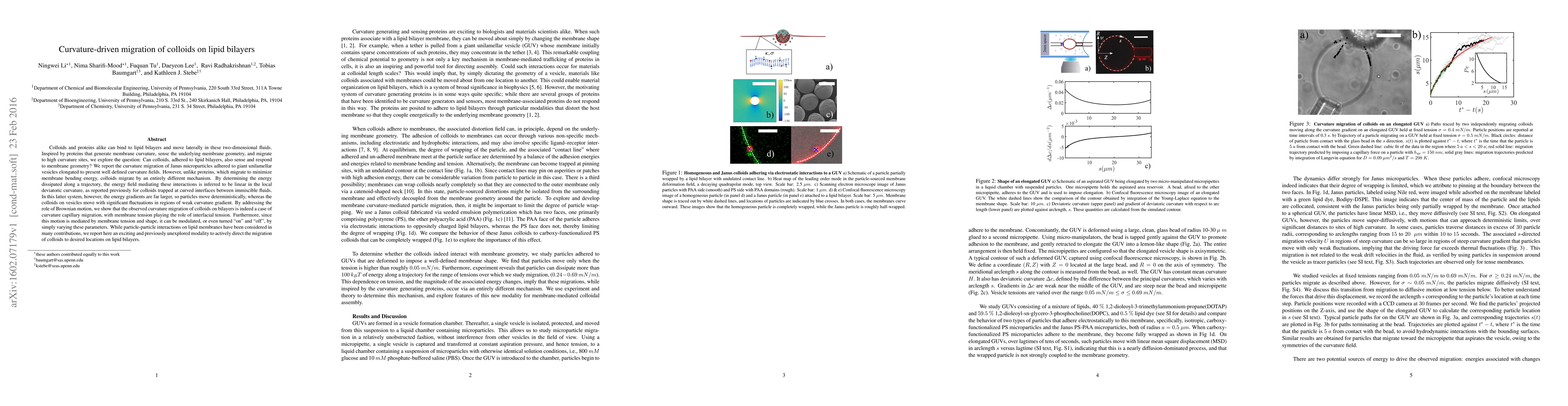 The paper presents a detailed analysis of colloidal particle migration on lipid bilayers, distinguishing it from protein behavior and elucidating the role of membrane tension in curvature-driven migration.