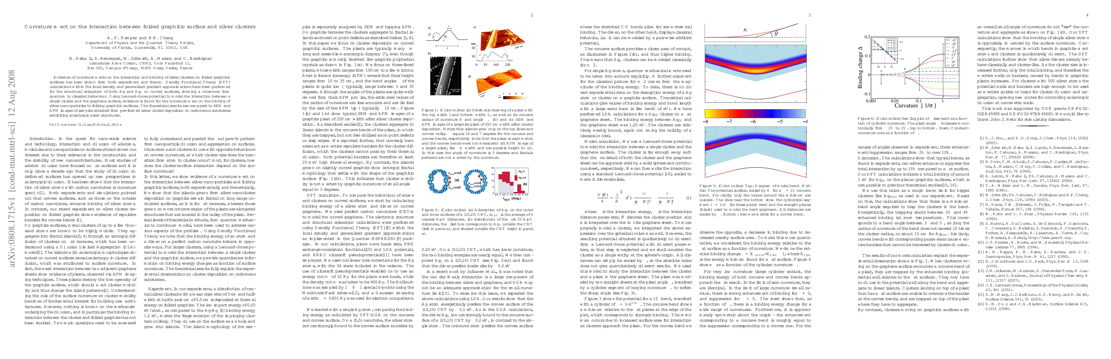 This paper investigates the curvature effect on the interaction between folded graphitic surfaces and silver clusters, revealing a transition from quantum to classical behavior through DFT calculations. Experimental SEM and AFM results corroborate theoretical findings showing the influence of curvature on silver nanoparticle binding.