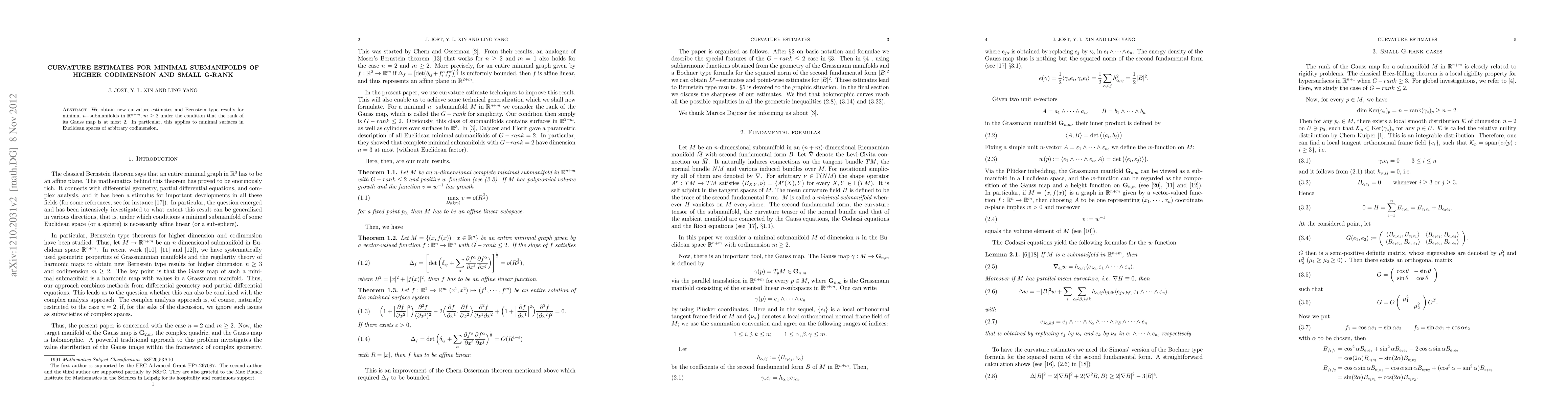 This research provides new curvature estimates for minimal submanifolds in higher dimensional spaces, under the condition that the rank of their Gauss map is at most 2. It also presents Bernstein-type results, particularly applicable to minimal surfaces in Euclidean spaces of any codimension.