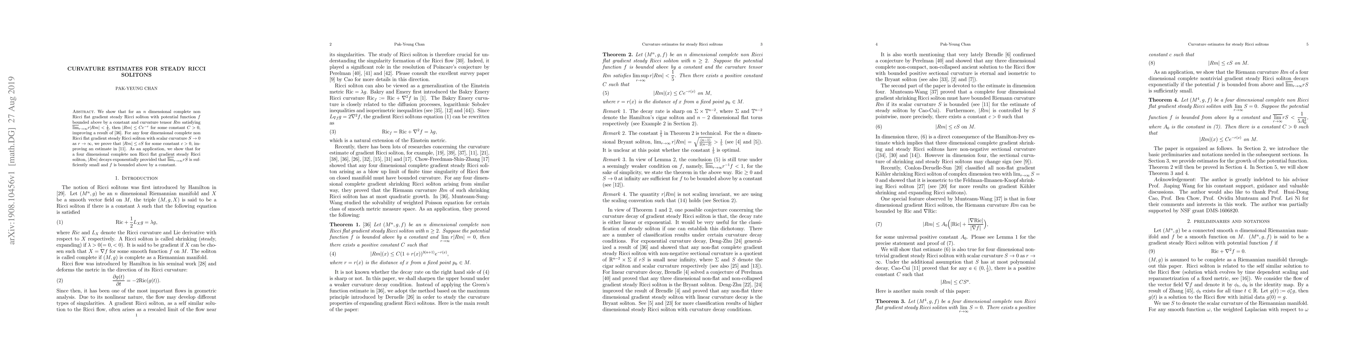 We show that for an $n$ dimensional complete non Ricci flat gradient steady Ricci soliton with potential function $f$ bounded above by a constant and curvature tensor $Rm$ satisfying $\overline{\lim}_{r\to \infty} r|Rm|<\frac{1}{5}$, then $|Rm|\leq Ce^{-r}$ for some constant $C>0$, improving a result of [36]. For any four dimensional complete non Ricci flat gradient steady Ricci soliton with scalar curvature $S\to 0$ as $r\to \infty$, we prove that $|Rm|\leq cS$ for some constant $c>0$, improving an estimate in [11]. As an application, we show that for a four dimensional complete non Ricci flat gradient steady Ricci soliton, $|Rm|$ decays exponentially provided that $\overline{\lim}_{r\to \infty} rS$ is sufficiently small and $f$ is bounded above by a constant.
