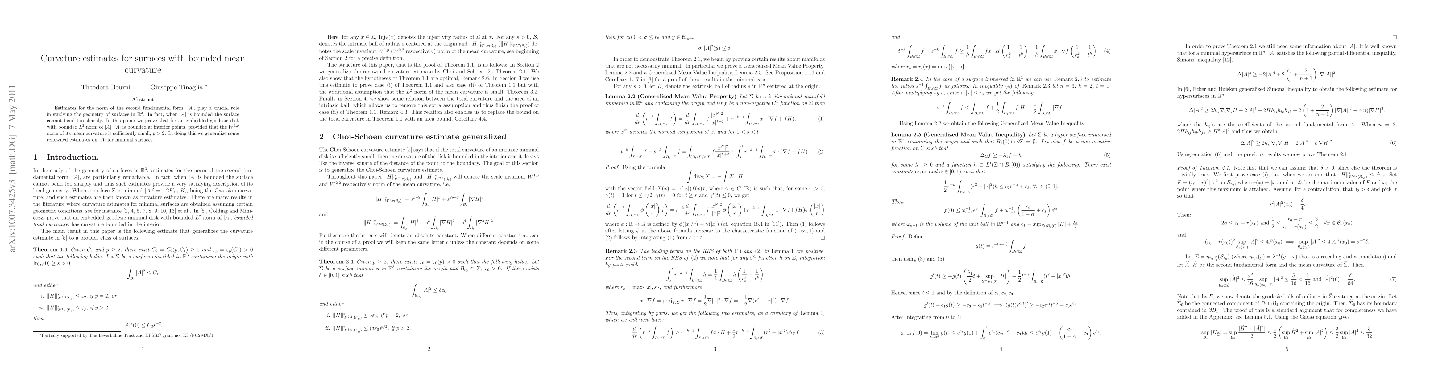 Estimates for the norm of the second fundamental form, $|A|$, play a crucial role in studying the geometry of surfaces. In fact, when $|A|$ is bounded the surface cannot bend too sharply. In this paper we prove that for an embedded geodesic disk with bounded $L^2$ norm of $|A|$, $|A|$ is bounded at interior points, provided that the $W^{1,p}$ norm of its mean curvature is sufficiently small, $p>2$. In doing this we generalize some renowned estimates on $|A|$ for minimal surfaces.